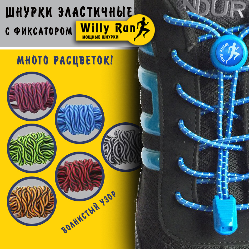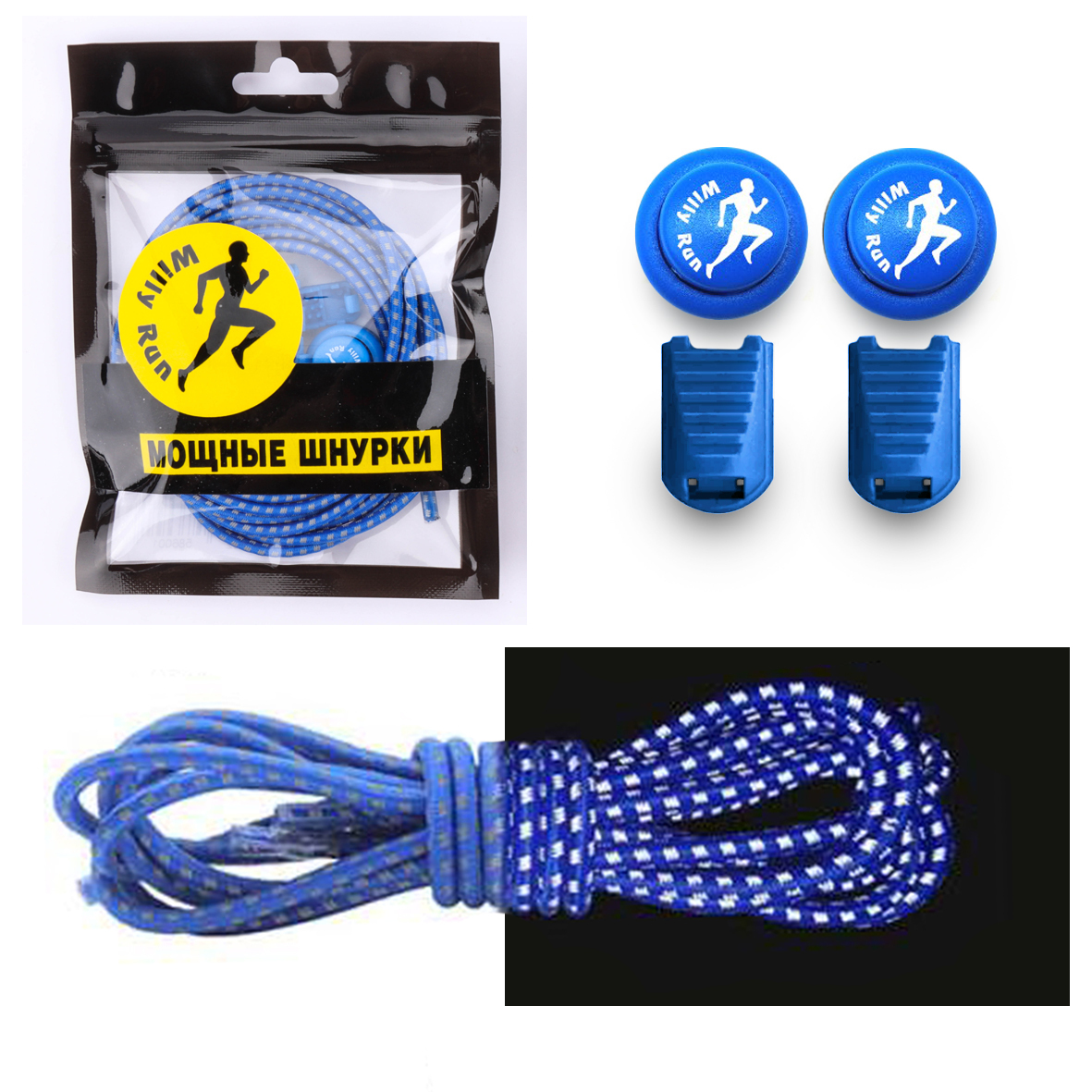 Шнурки Willy Run эластичные светоотражающие с фиксатором синие