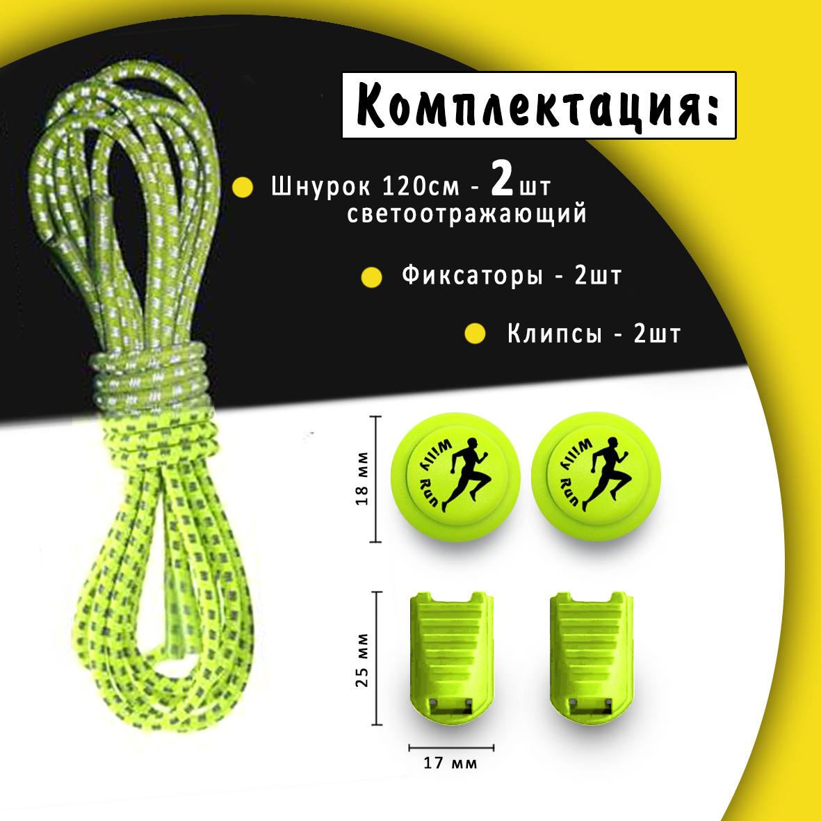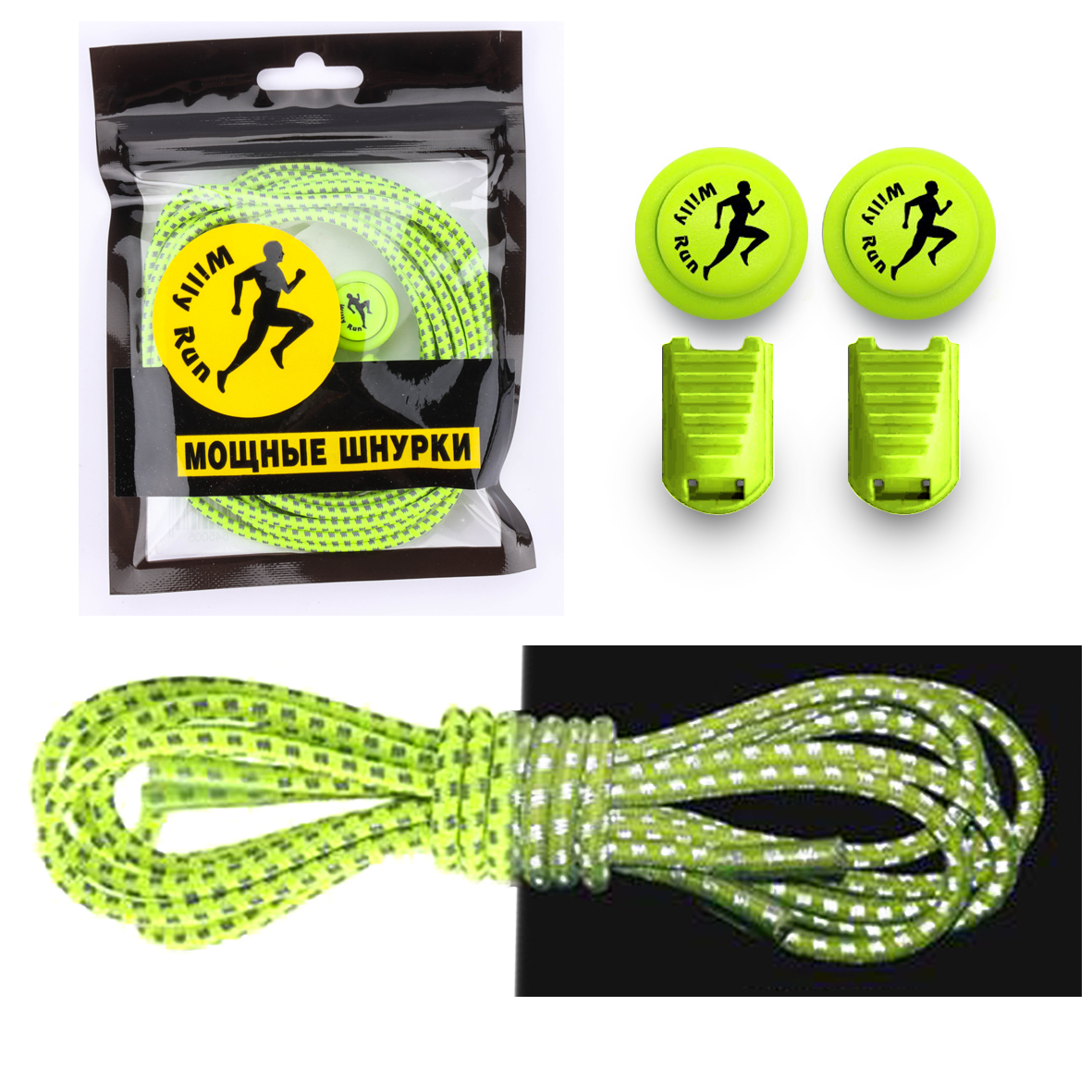 Шнурки Willy Run эластичные светоотражающие с фиксатором желтые