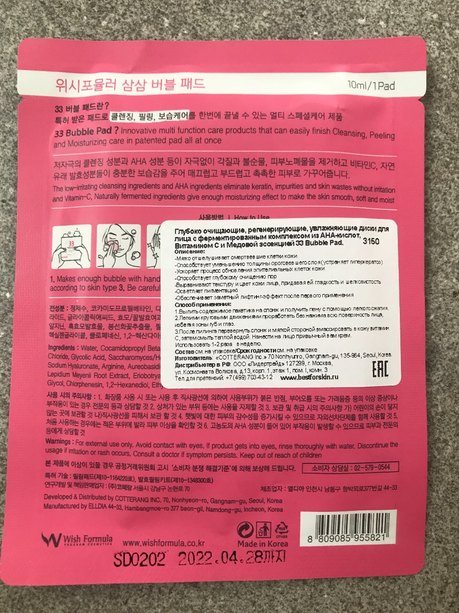 Wish Formula Пилинг для лица Bubble Bubble Chef Cushion c Витамином С и Фруктовыми кислотами 60мл.