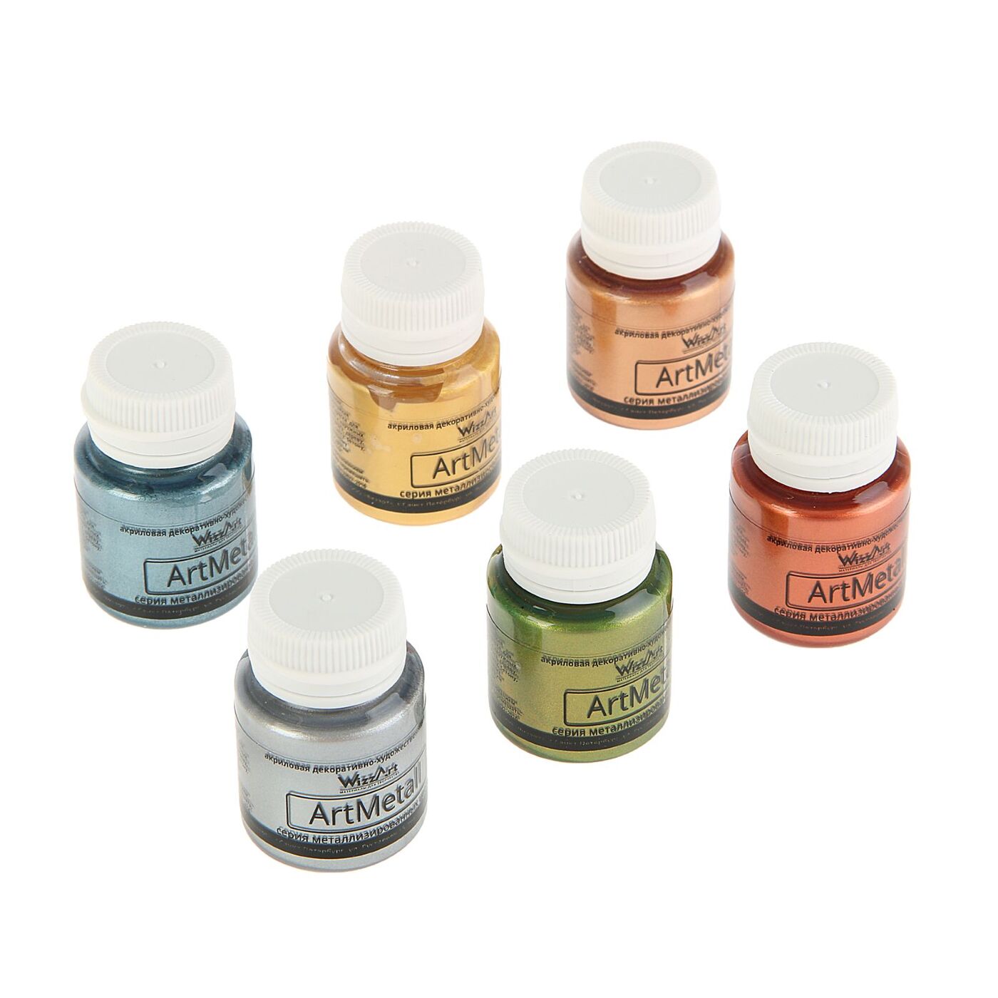 Краска акриловая, набор Metallic, 6 цветов по 20 мл, WizzArt Set, металлизированные