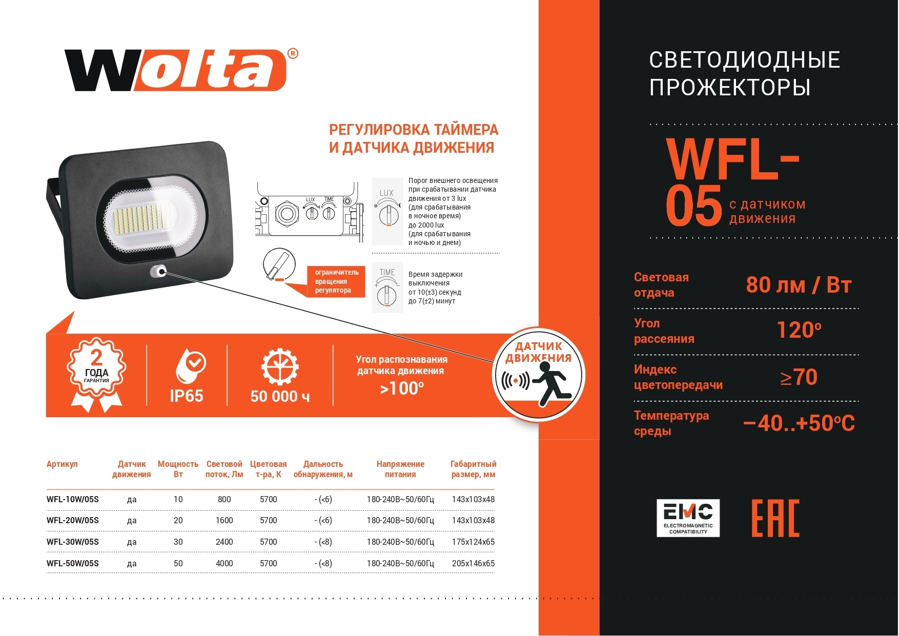 Прожектор Wolta, WFL sensor 5700 К, 20 Вт