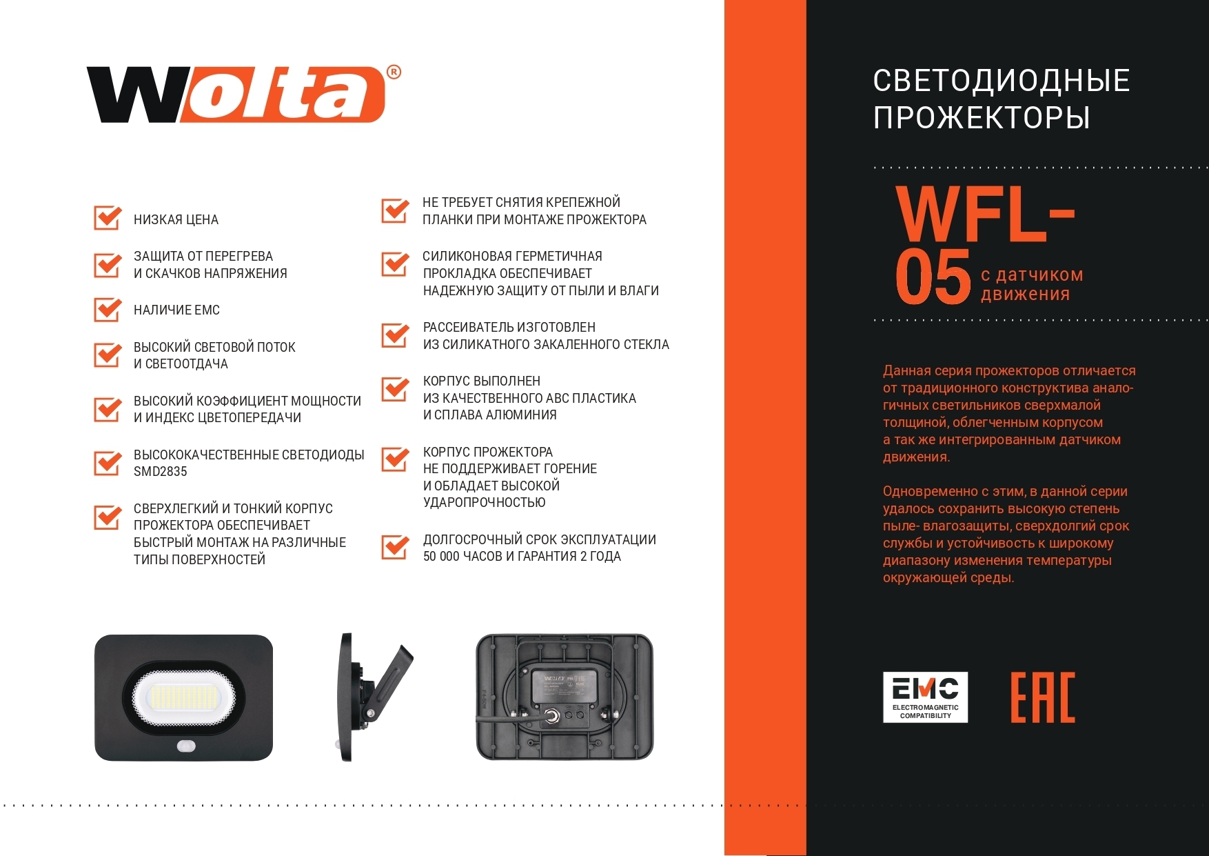 Прожектор Wolta, WFL-10W/06 5700K 10 Вт SMD IP65 900 лм 5700 К