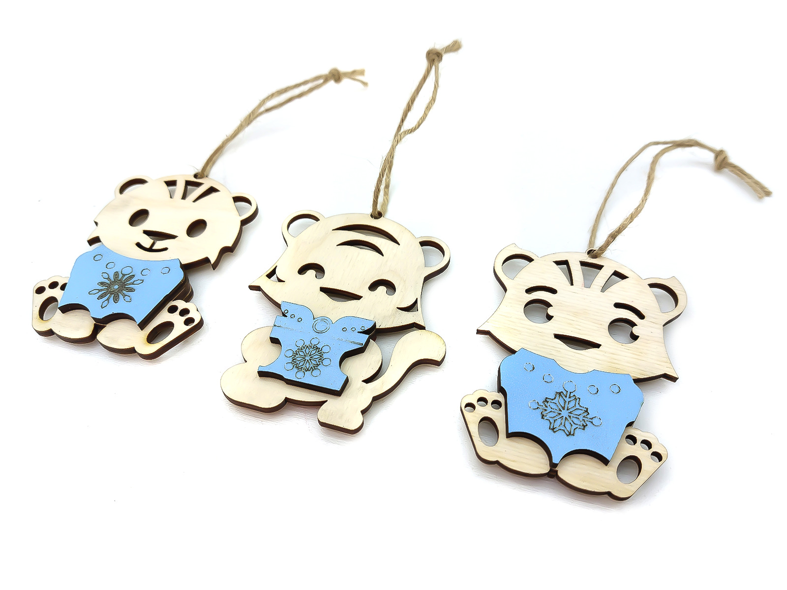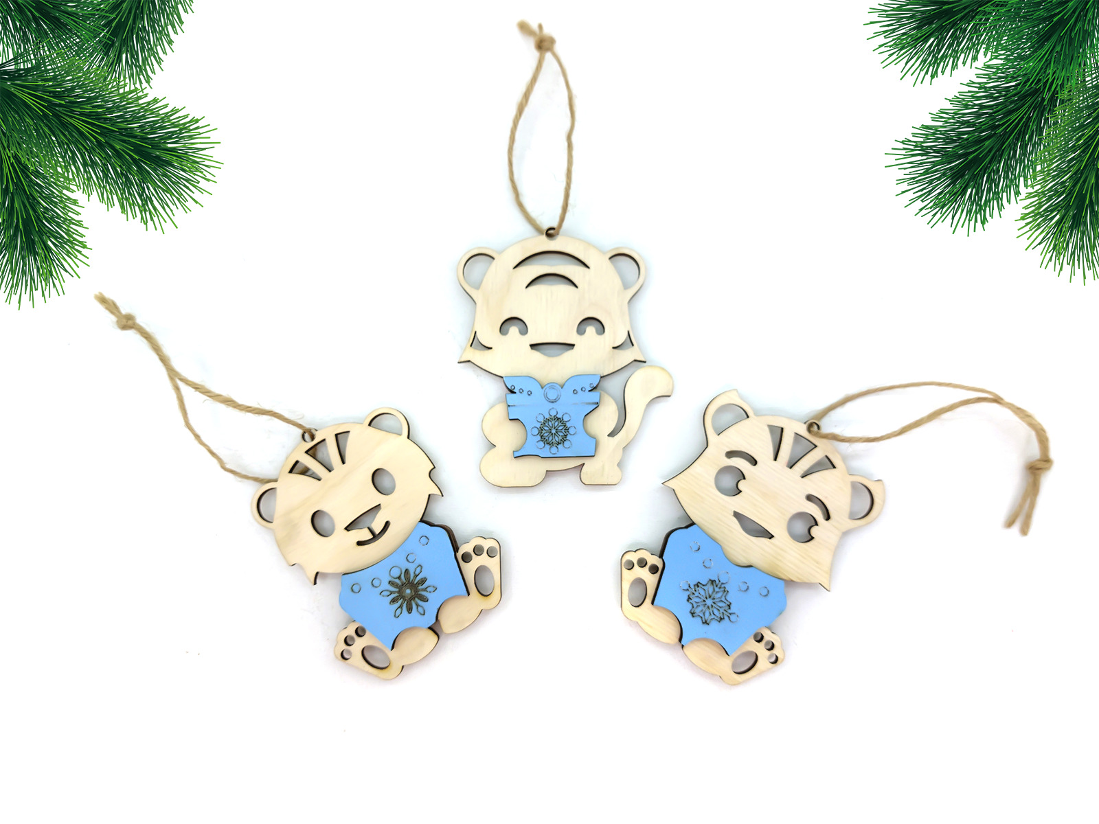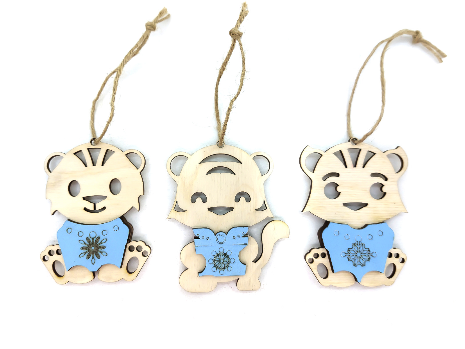 Ёлочная игрушка Тигр WoodM 3 шт.