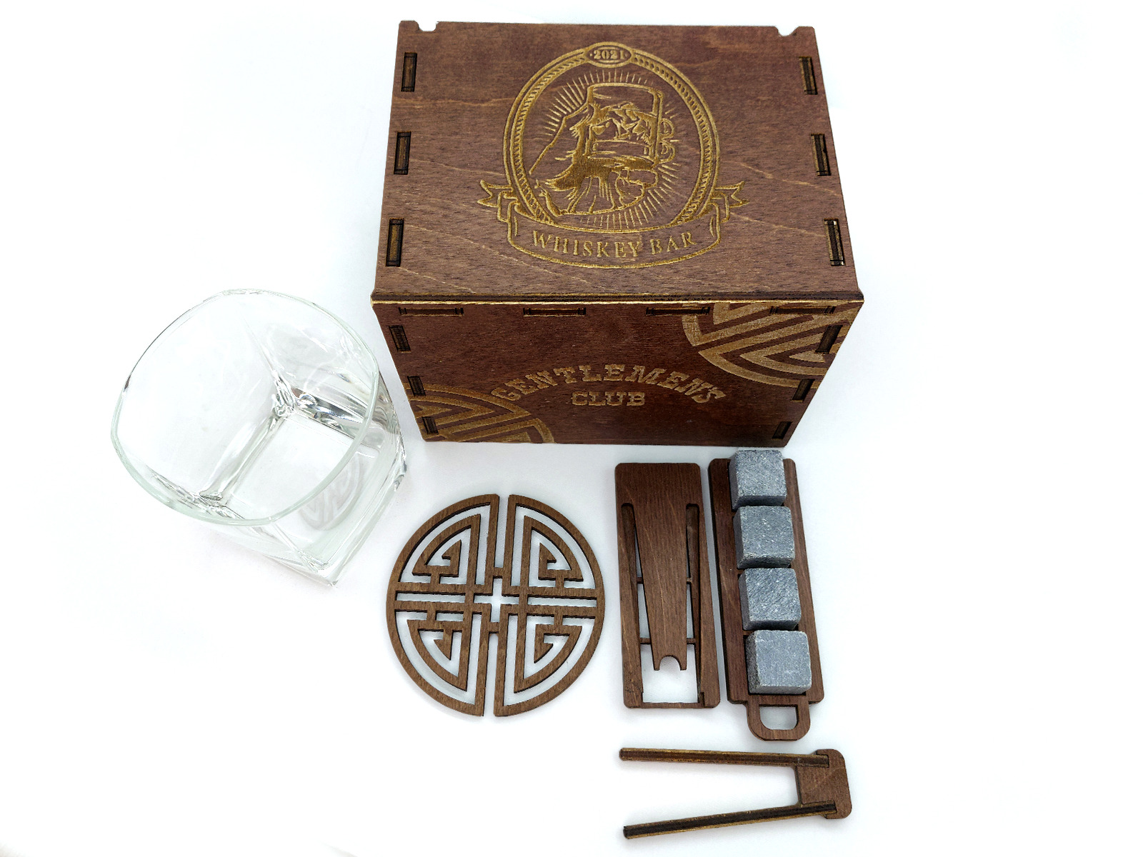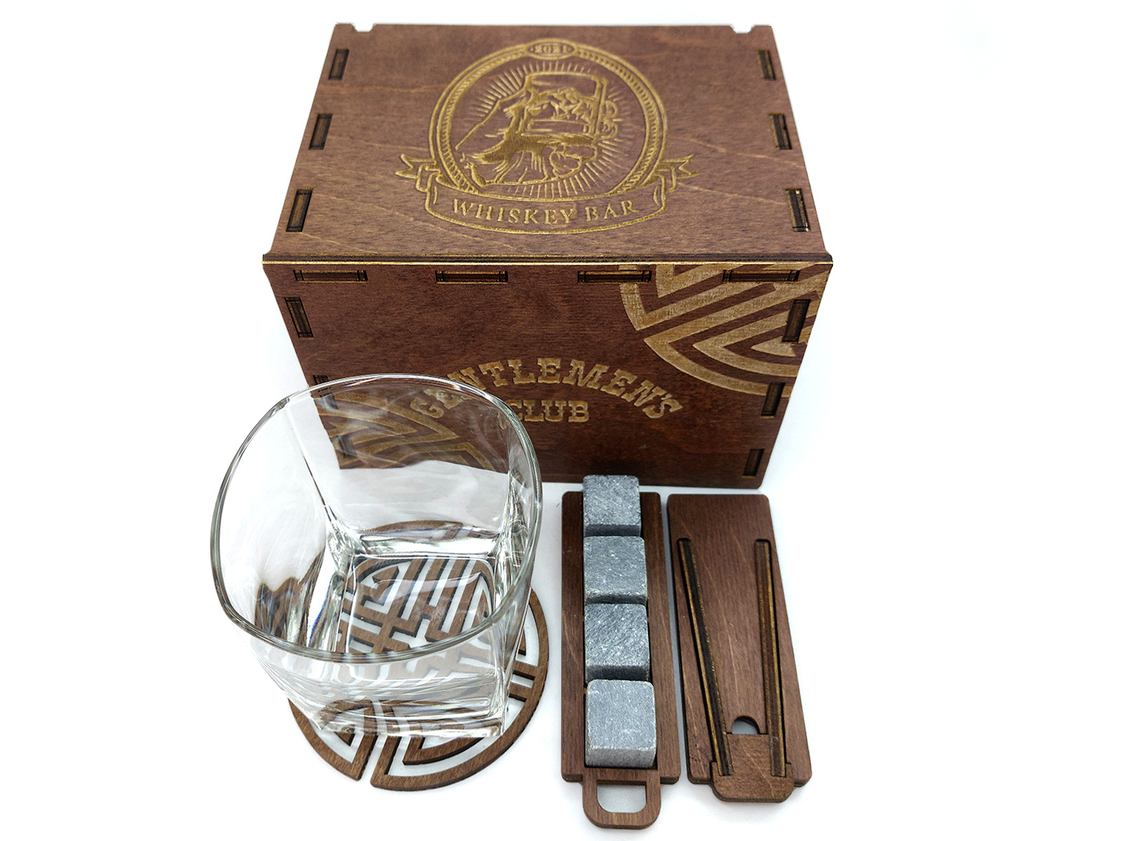 Мужской подарочный набор бокалов с камнями для охлаждения напитков: коньяка, виски, рома и др.