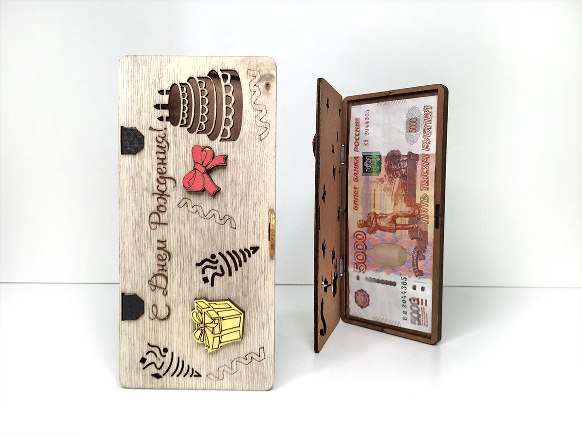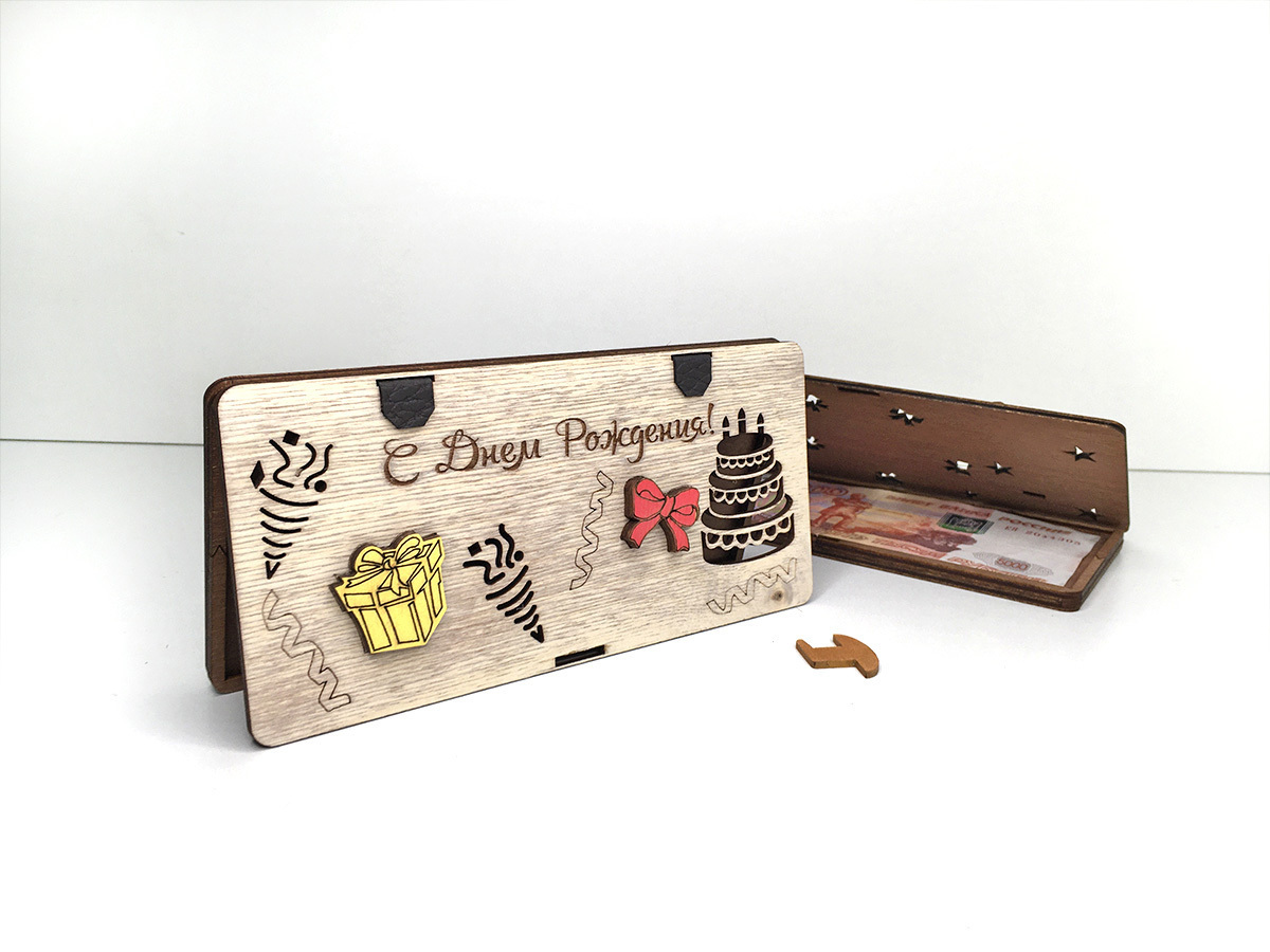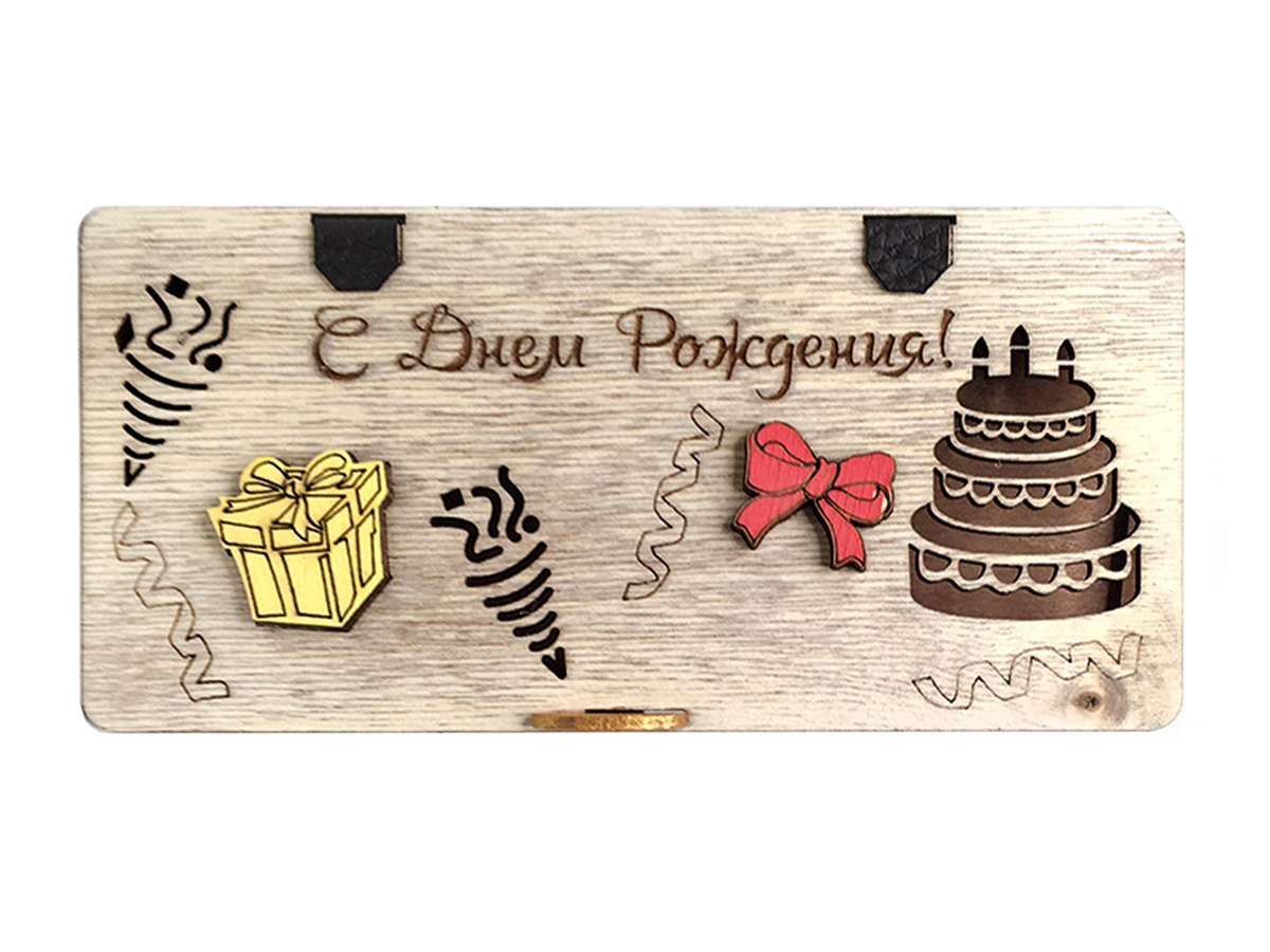 Деревянный конверт для денег "С Днём Рождения" / Конверт для денег деревянный / Купюрница