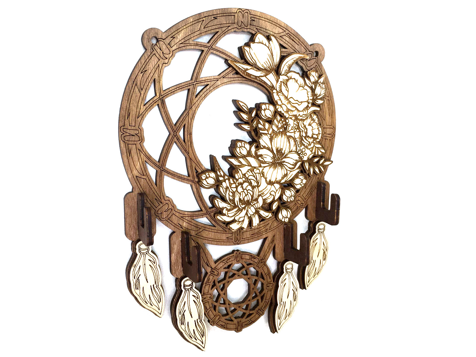 Ключница настенная WoodM "Цветы" с 4 крюч., 1 шт