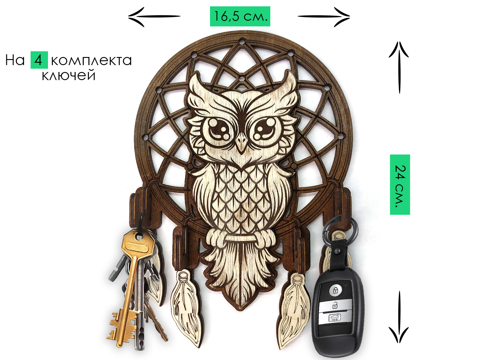 Ключница настенная WoodM "Сова" с 4 крюч., 1 шт