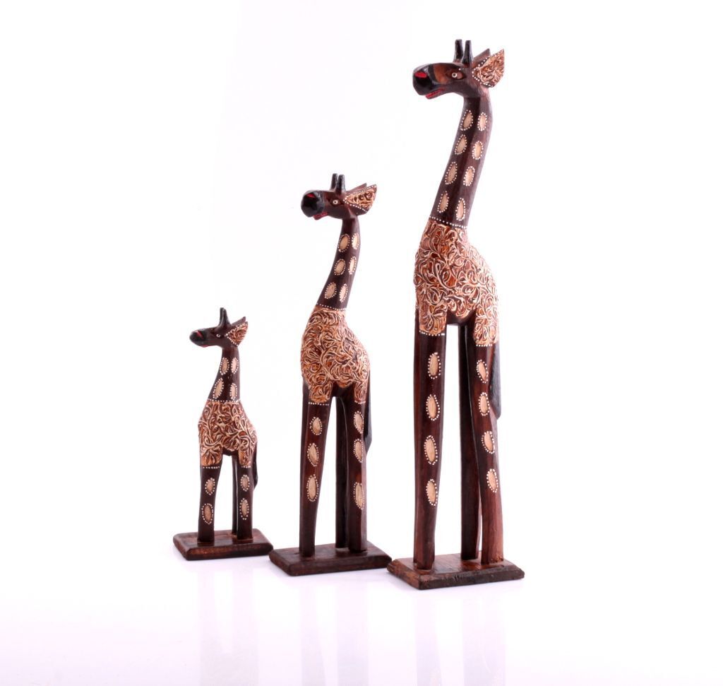 Статуэтки набор из 3 жирафов дерево Албезия, ручная работа "WoodOwl"