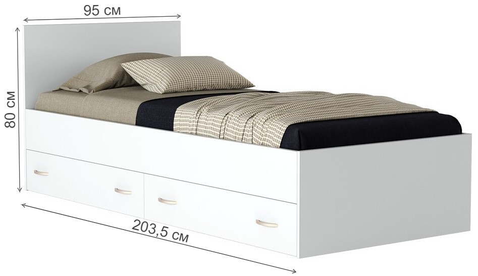 Односпальная кровать Виктория 90 90x200 с ящиками, 90х200 см, Woodville