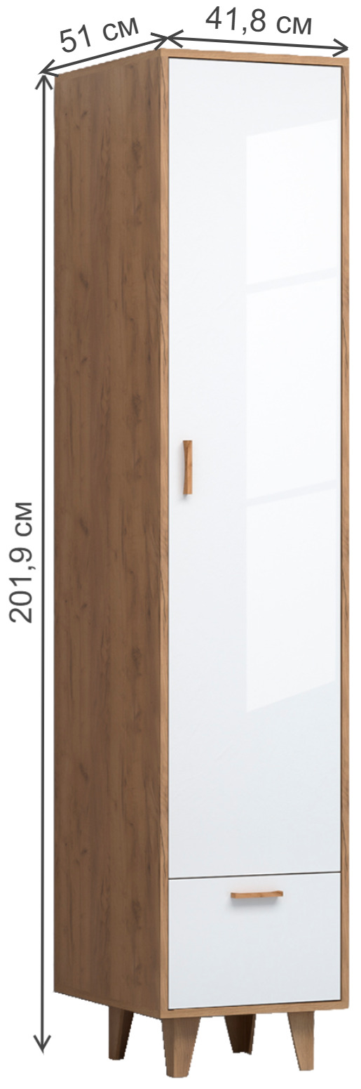 Шкаф-пенал Эдисон 1 с ящиком на ножках, 41.8х51х201.9 см, Woodville