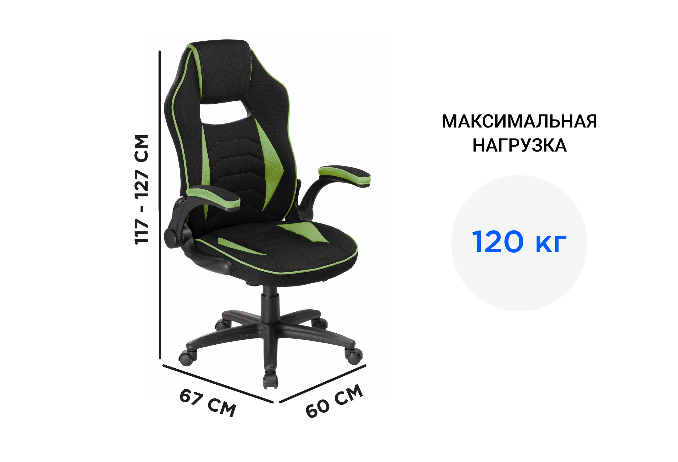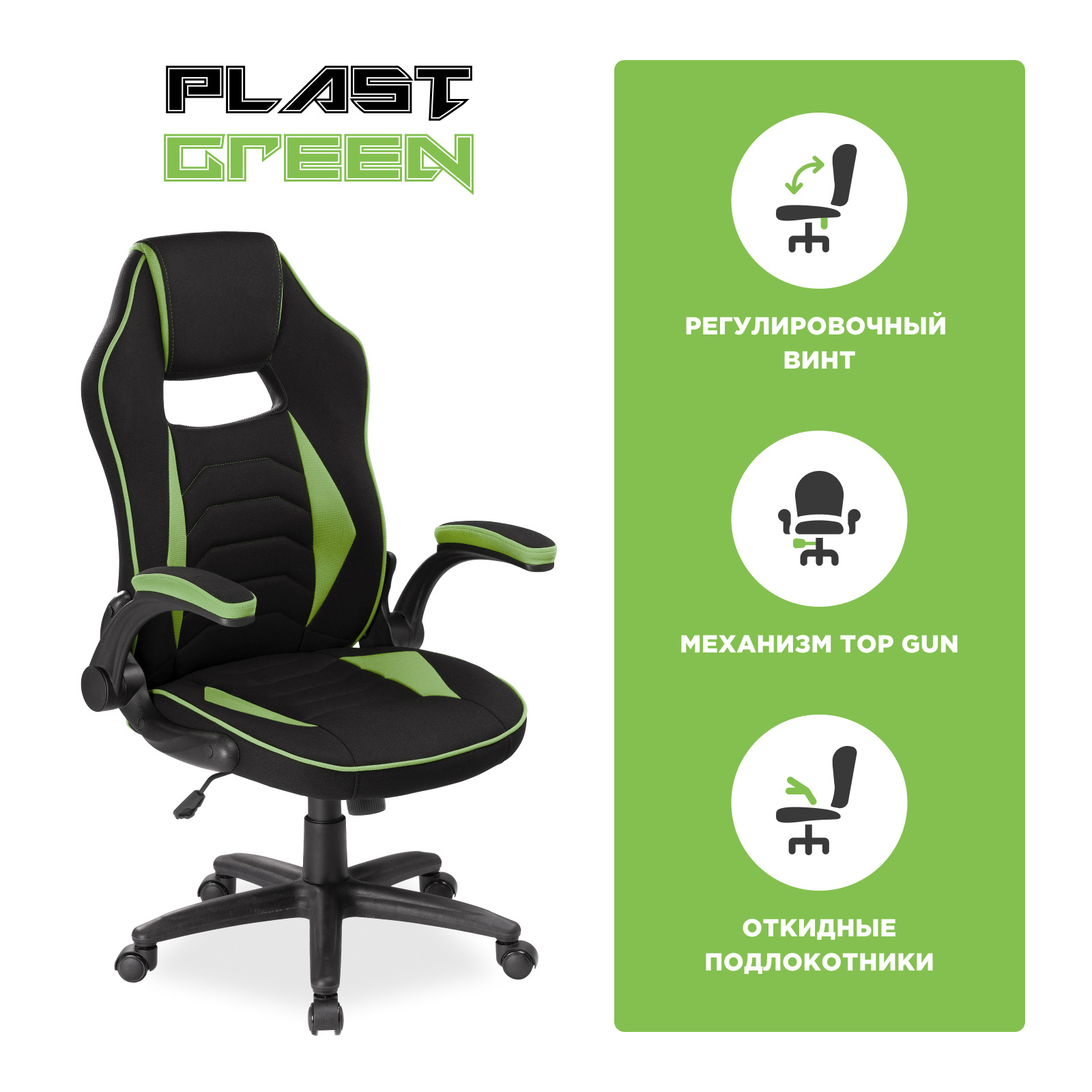 Игровое компьютерное кресло, Офисное кресло,Plast 1, экокожа, черный, зеленый
