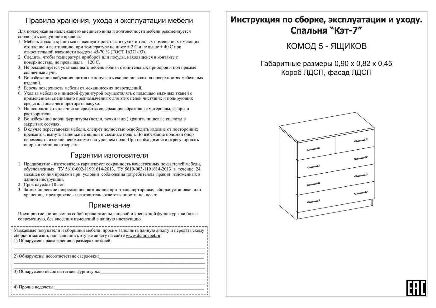 Комод Кэт-7, 5 ящ., 90х45x81.59 см, Woodville