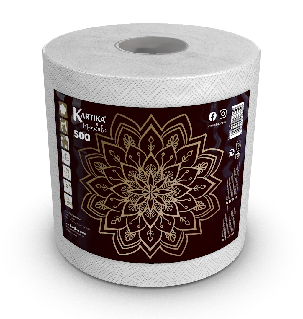 Полотенце бумажные Mandala, 2-х сл, 1 рулон, 500 листов, 21,7*20,5 см, World Cart