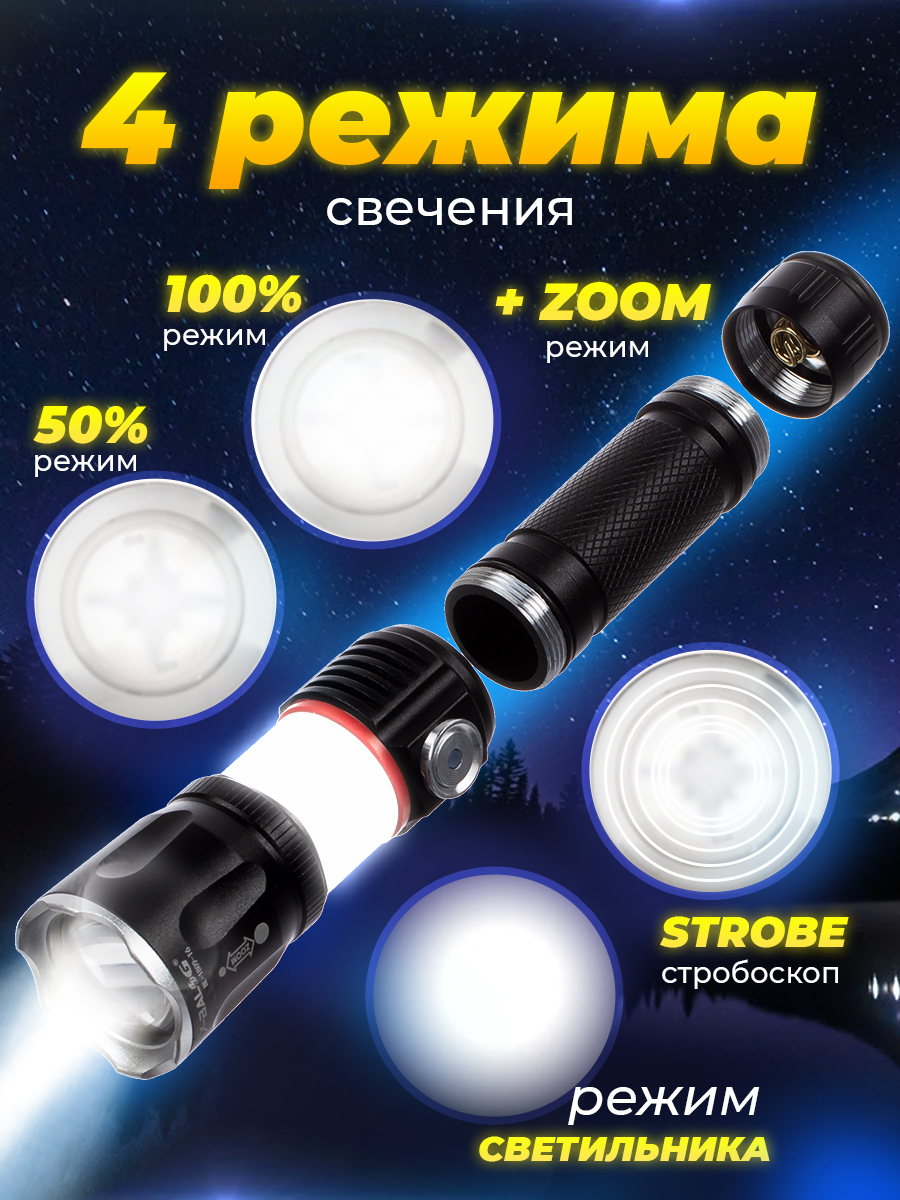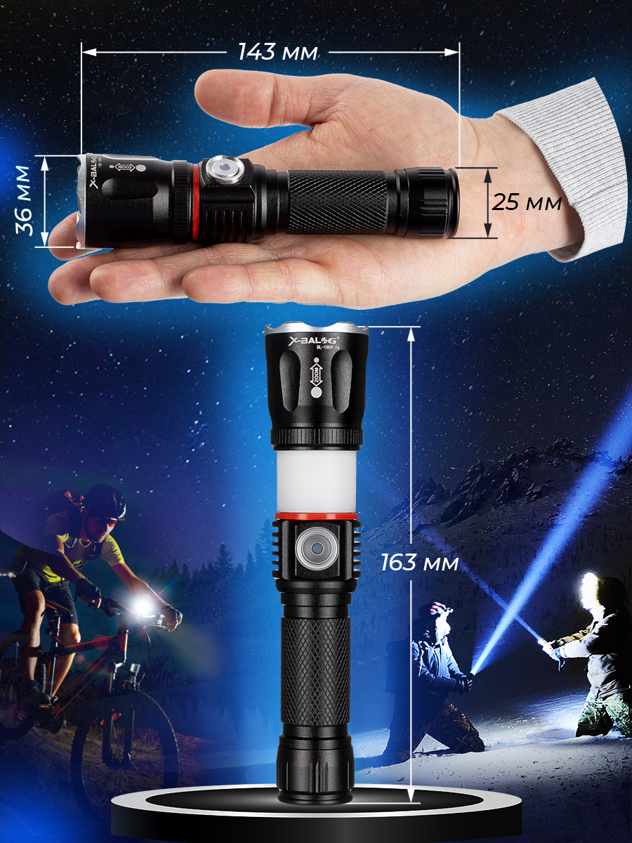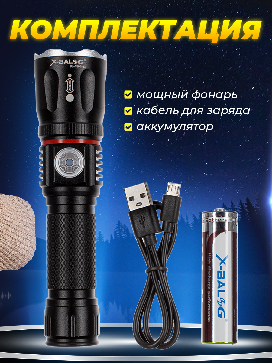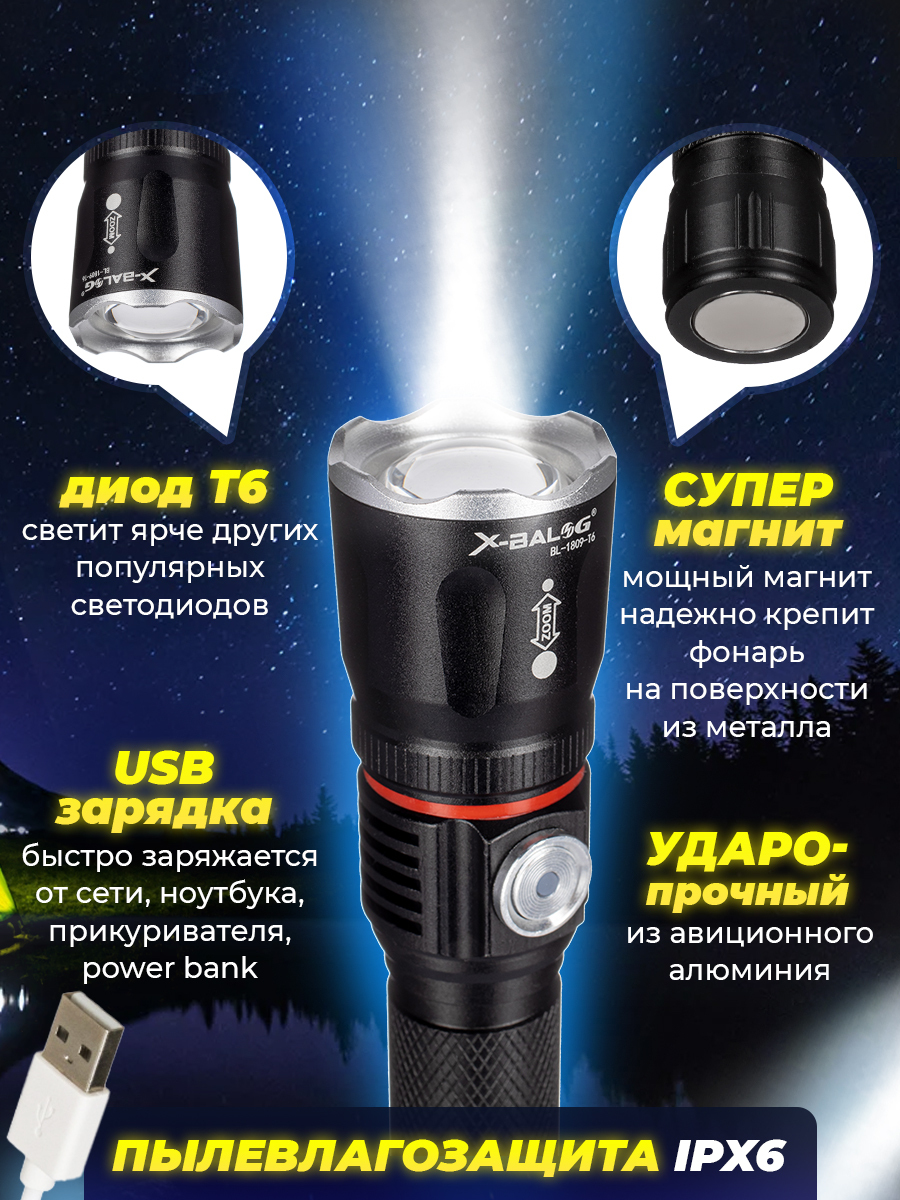 X-BALOG YYC-C62 Фонарь ручной аккумуляторный zoom, зарядка от microUSB