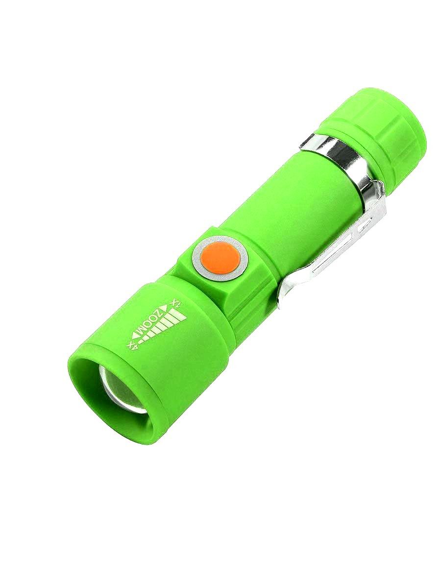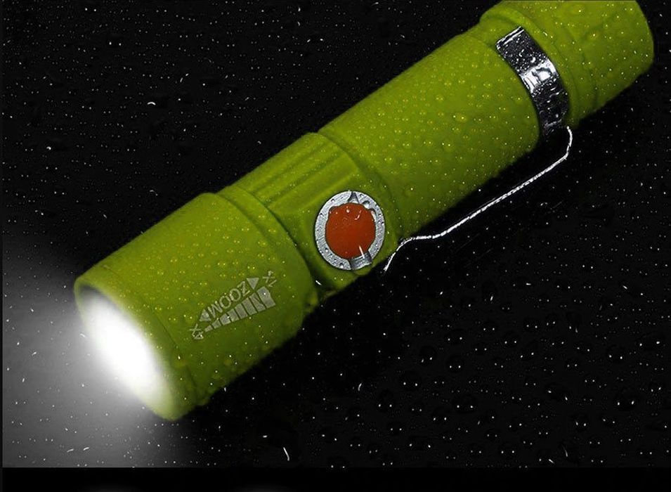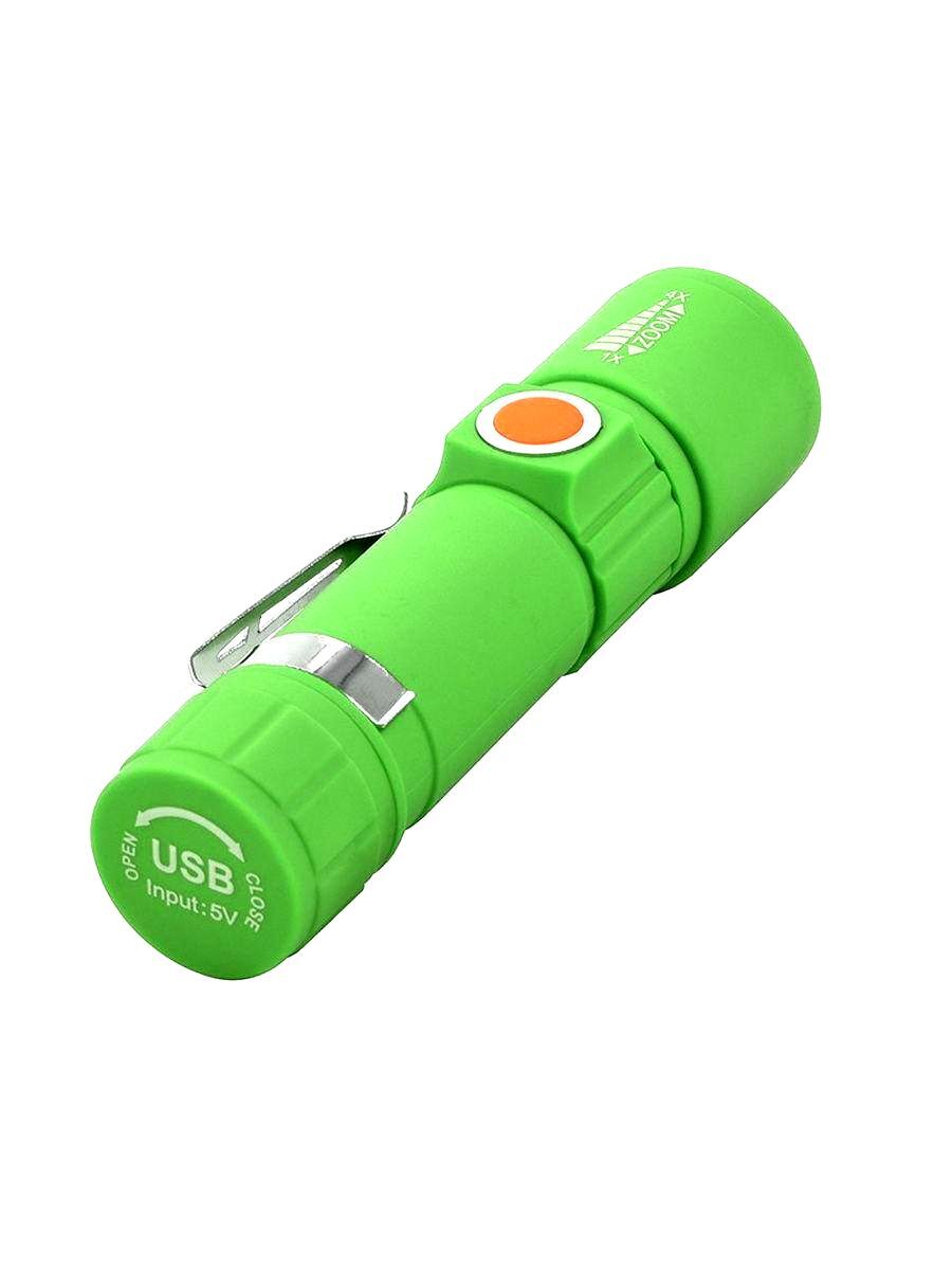 Фонарик свтодиодный с фокусировкой, зарядка от USB (li-ion батарея) 11см, зеленый