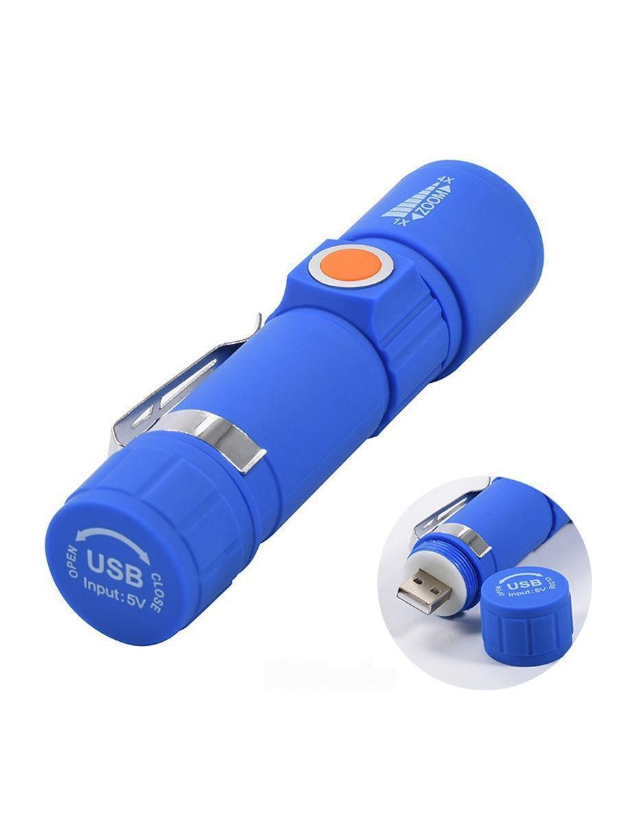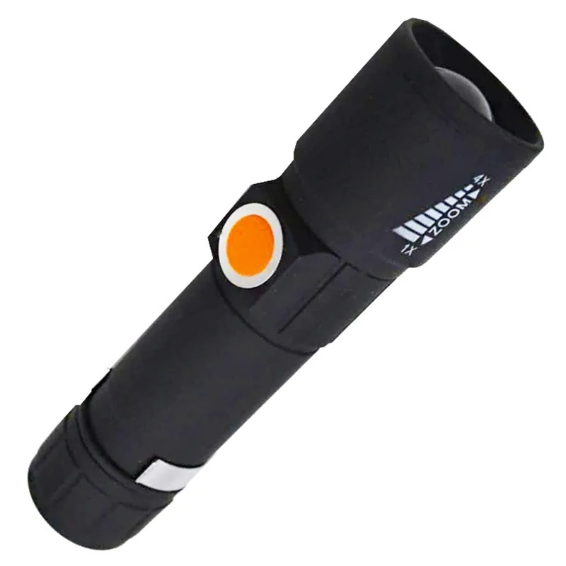 Фонарик свтодиодный с фокусировкой, зарядка от USB (li-ion батарея) 11см, черный