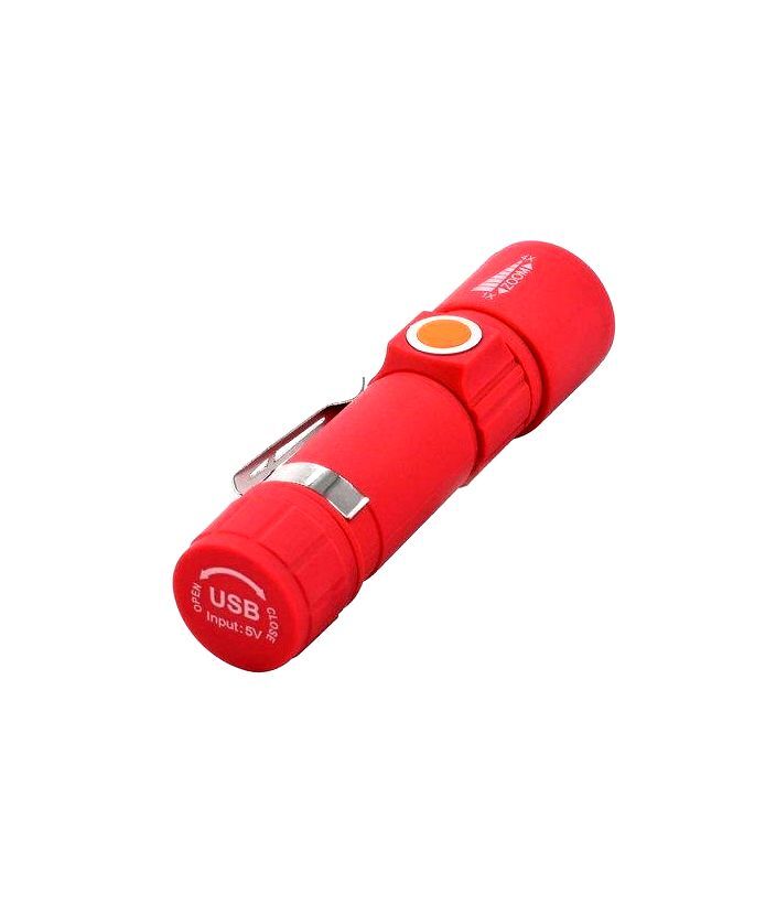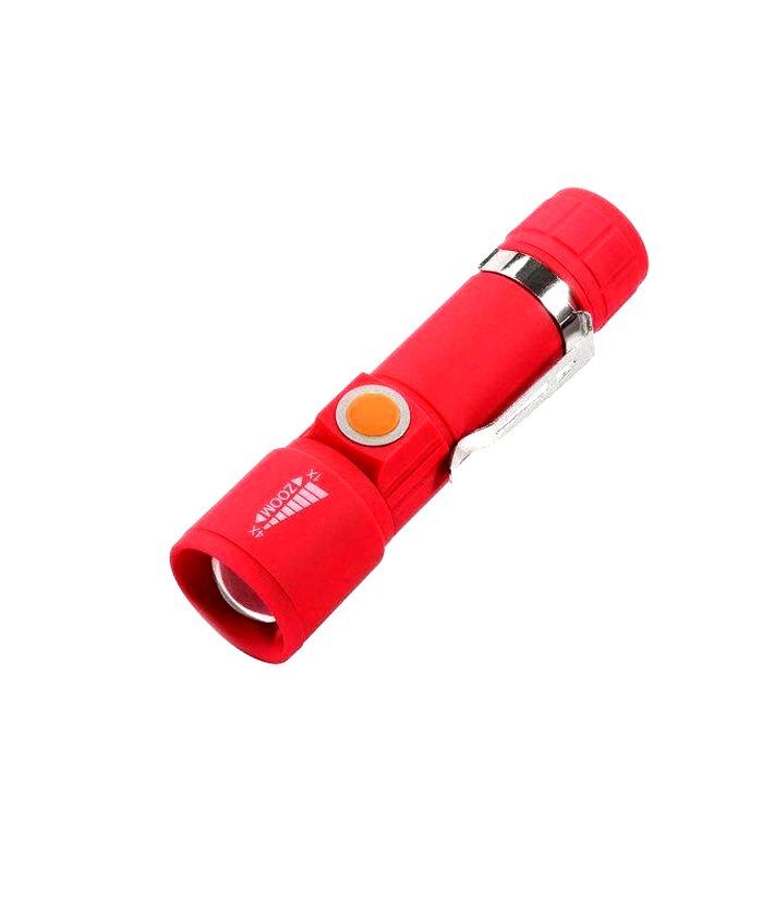 Фонарик свтодиодный с фокусировкой, зарядка от USB (li-ion батарея) 11см, красный