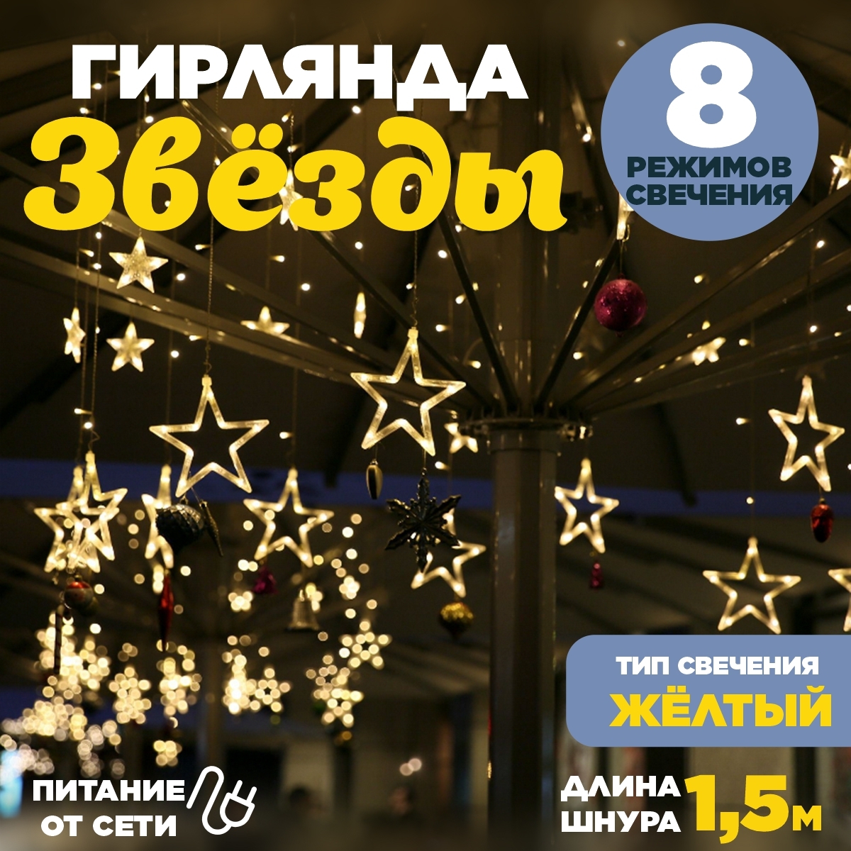 Гирлянда штора "Звезды", 3 м, теплый белый