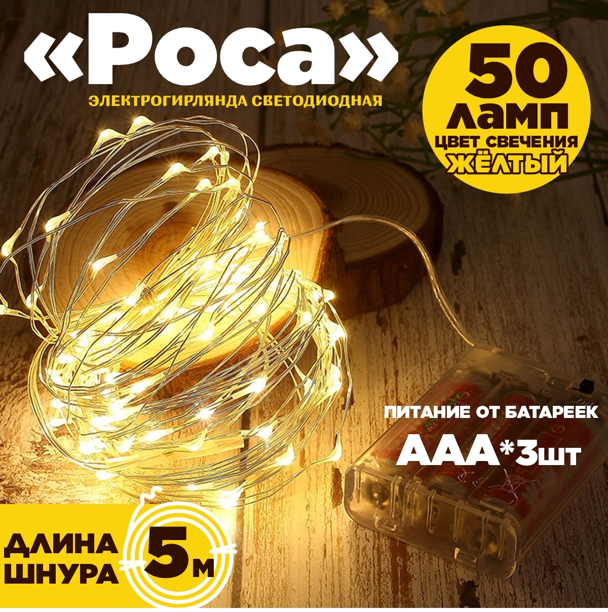 Электрогирлянда интерьерная Роса X-Line Светодиодная 50 ламп, 5 м, питание 3 AAA, 1 шт