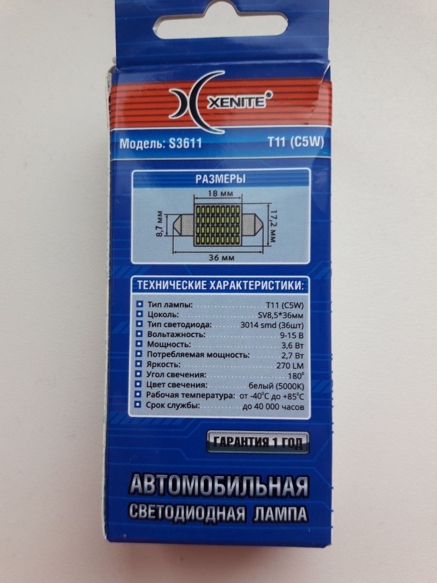 Автомобильная светодиодная лампа XENITE S3611 (C5W 36мм) 5000K 12V (упаковка 1 шт.) Гарантия 1 год