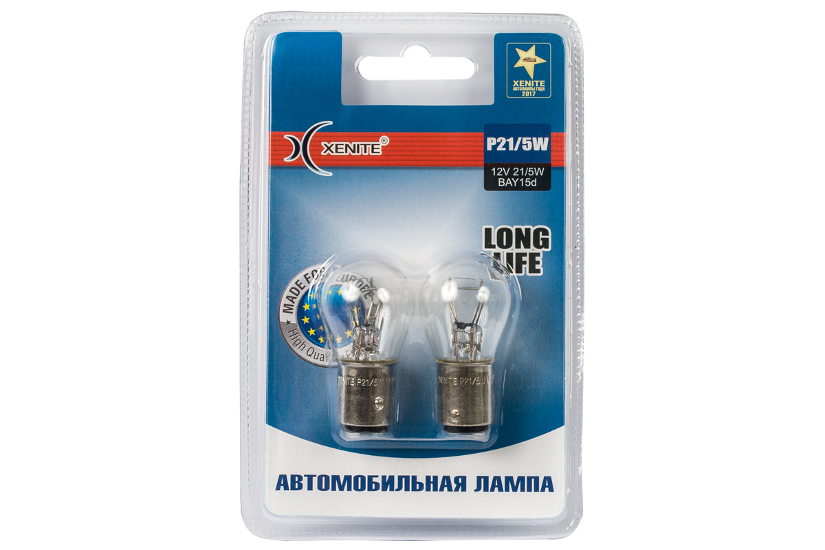 Лампа автомобильная XENITE P21/5W (BAY15d) (LONG LIFE) 12V 21/5W (блистер 2 шт.)