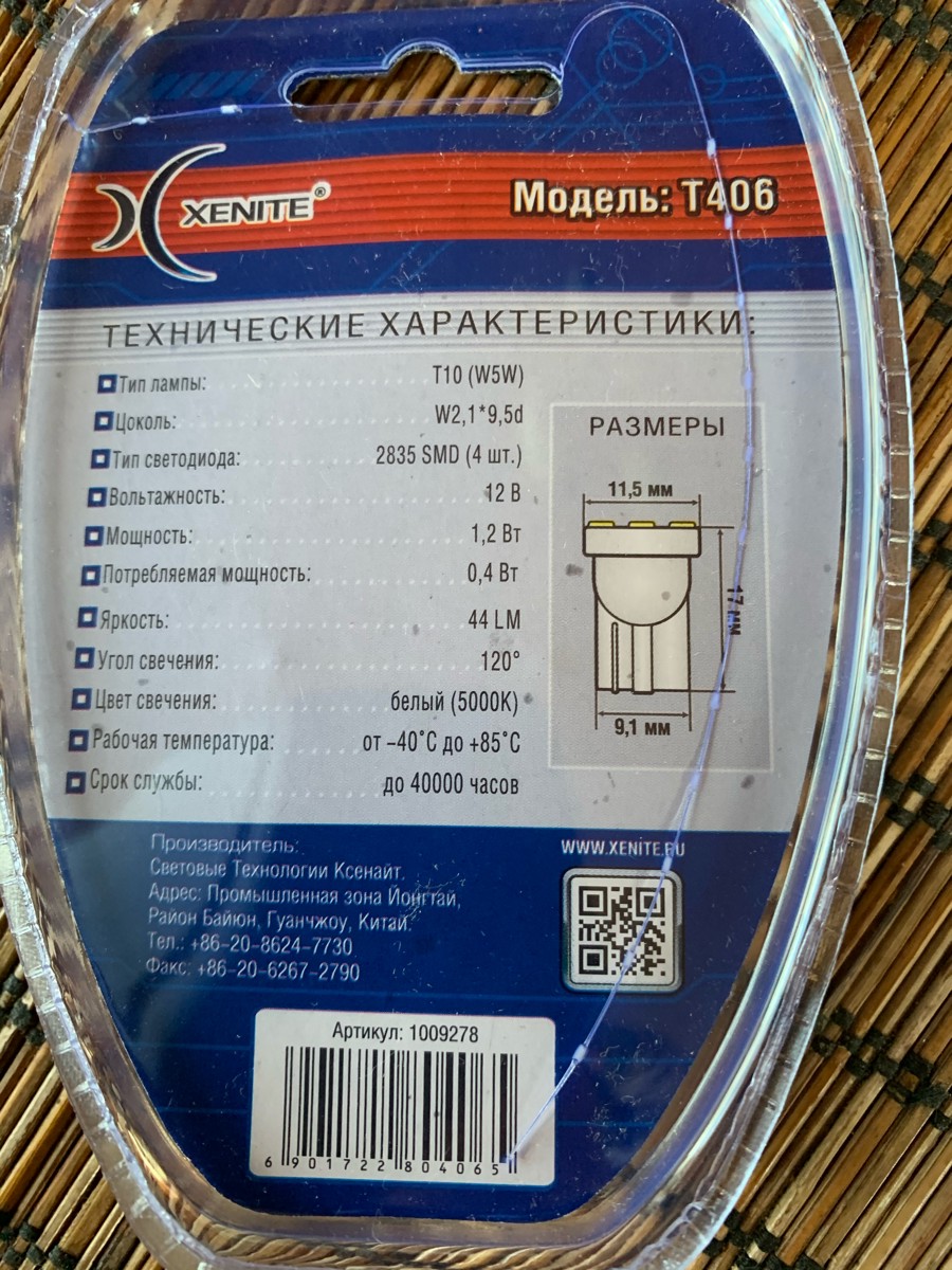 Автомобильная светодиодная лампа XENITE T406 (T10/W5W) 5000K 12V (блистер 2 шт.) Гарантия 1 год