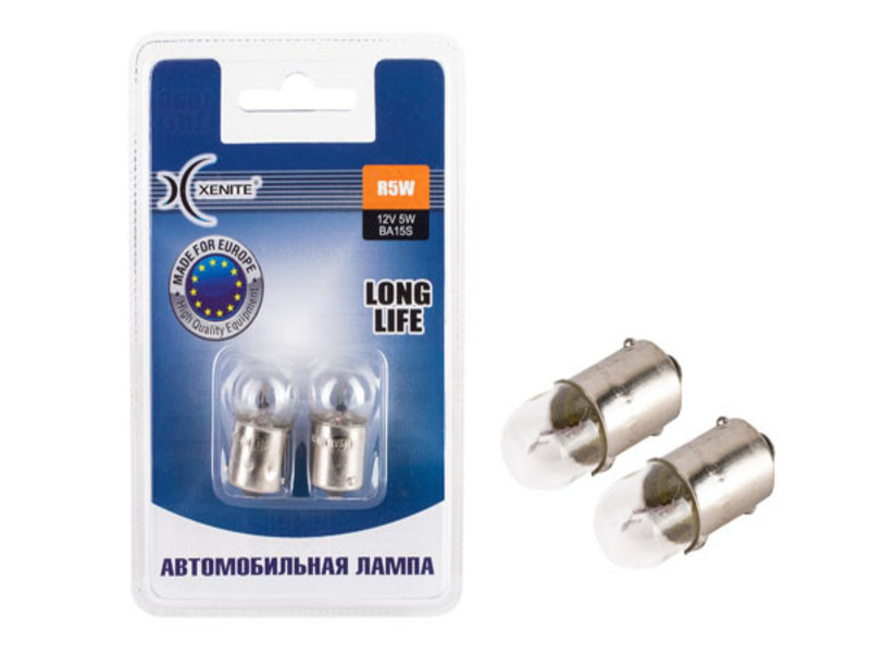 Лампа автомобильная XENITE R5W (BA15s) (LONG LIFE) 12V 5W (блистер 2 шт.)
