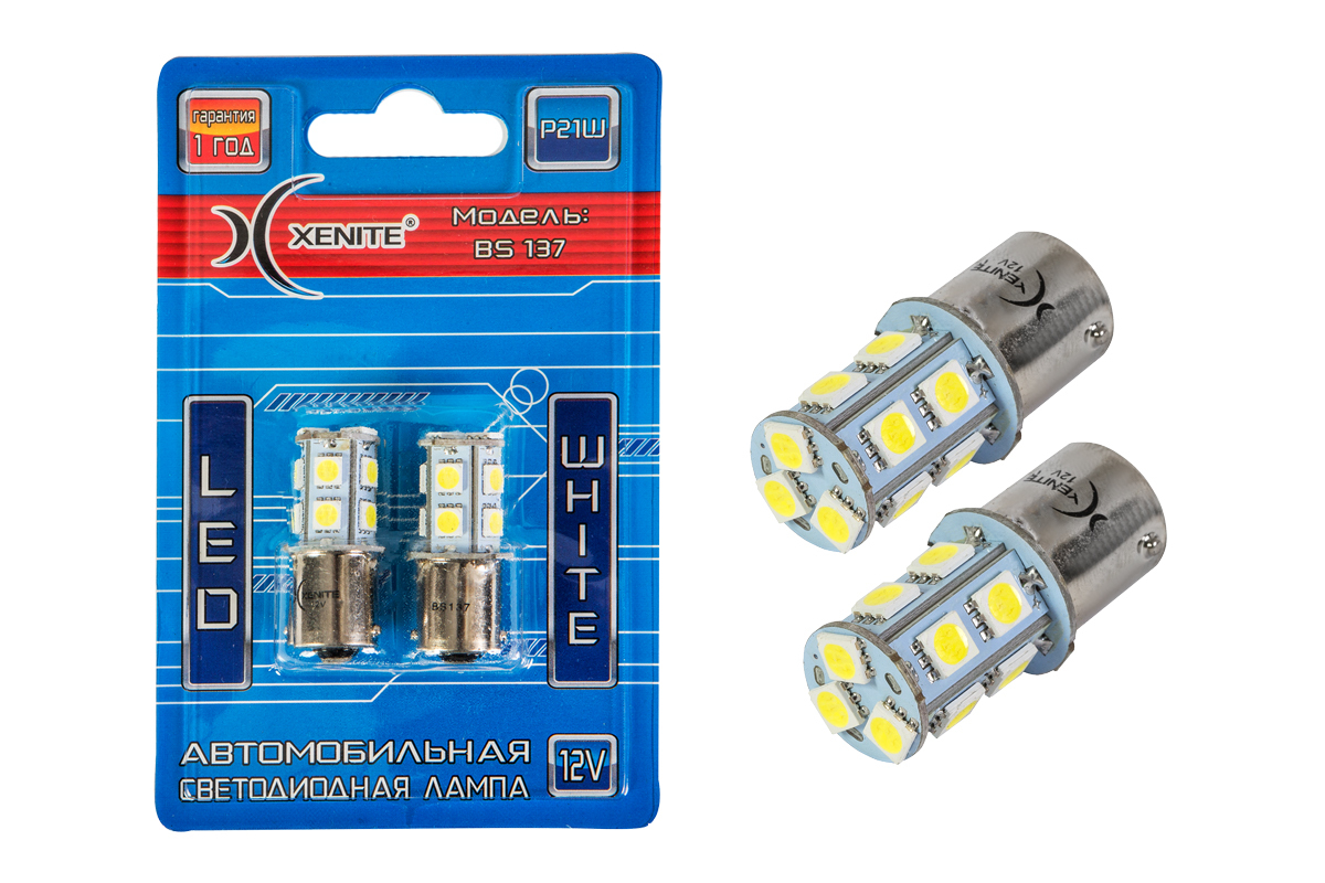 Автомобильная светодиодная лампа XENITE BS 137 (P21W) 5000K 12V (блистер 2 шт.) Гарантия 1 год