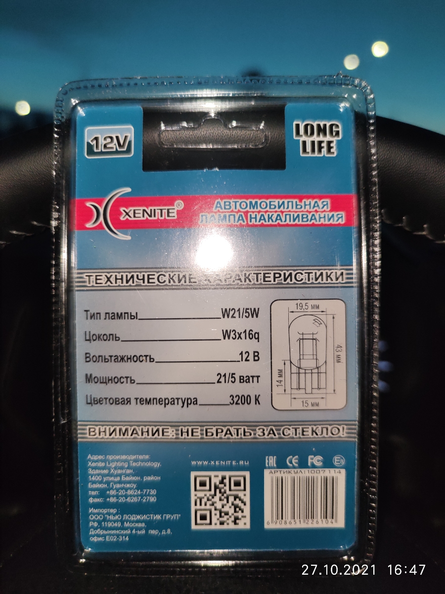 Лампа автомобильная XENITE P21W (BA15s) (LONG LIFE) 12V 21W (блистер 2 шт.)