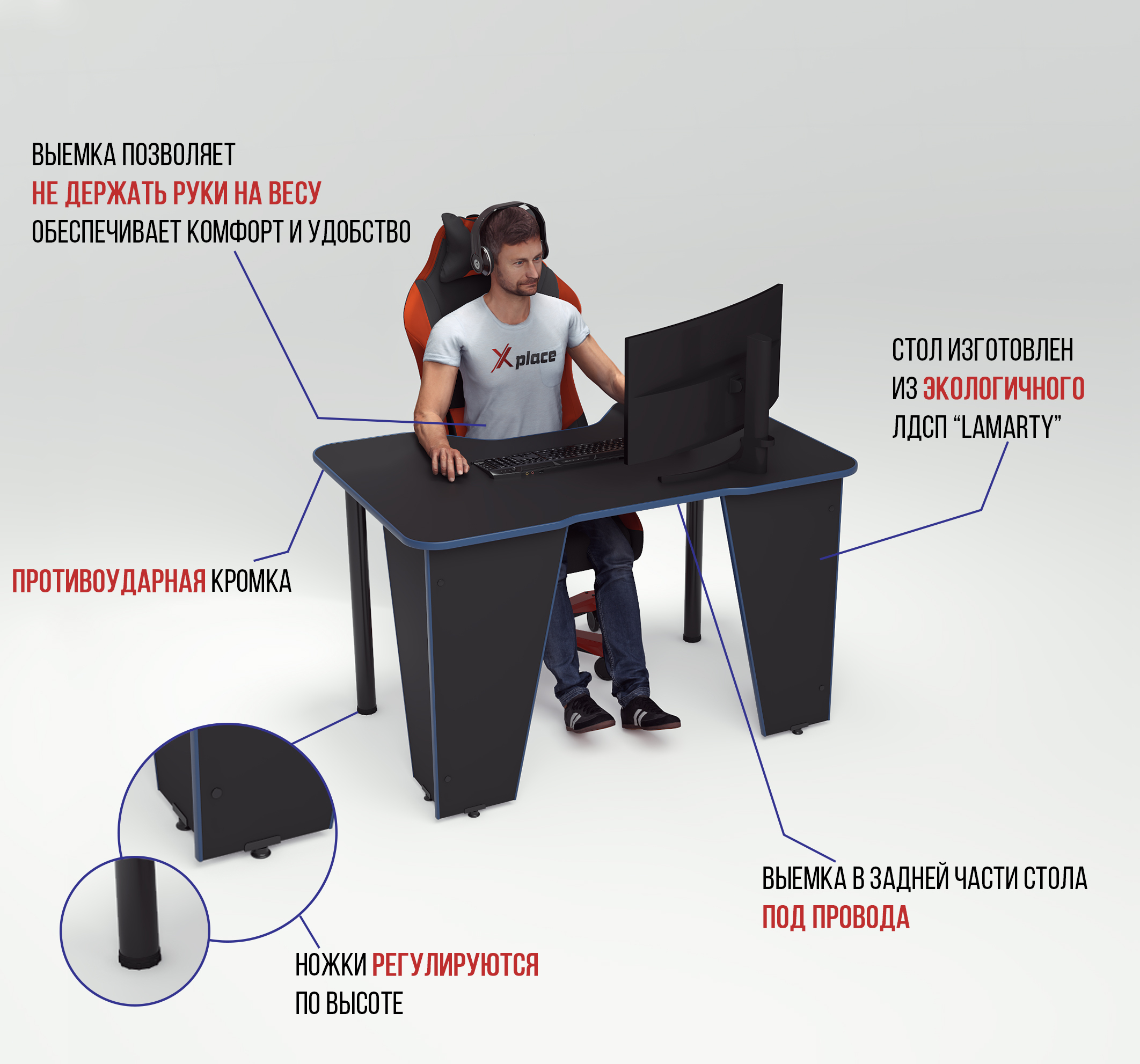 Геймерский компьютерный стол, Компьютерный стол Xplace 709, 120х78х75 см