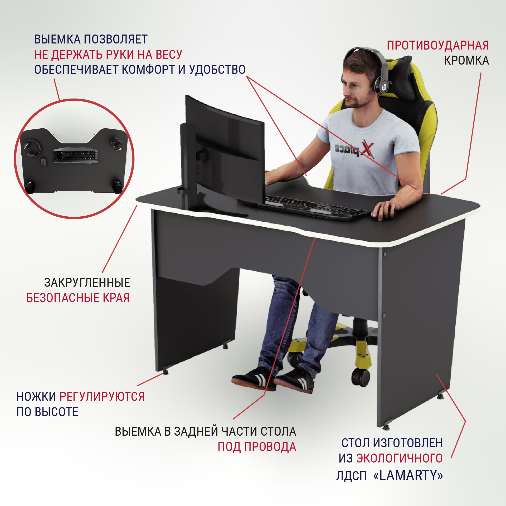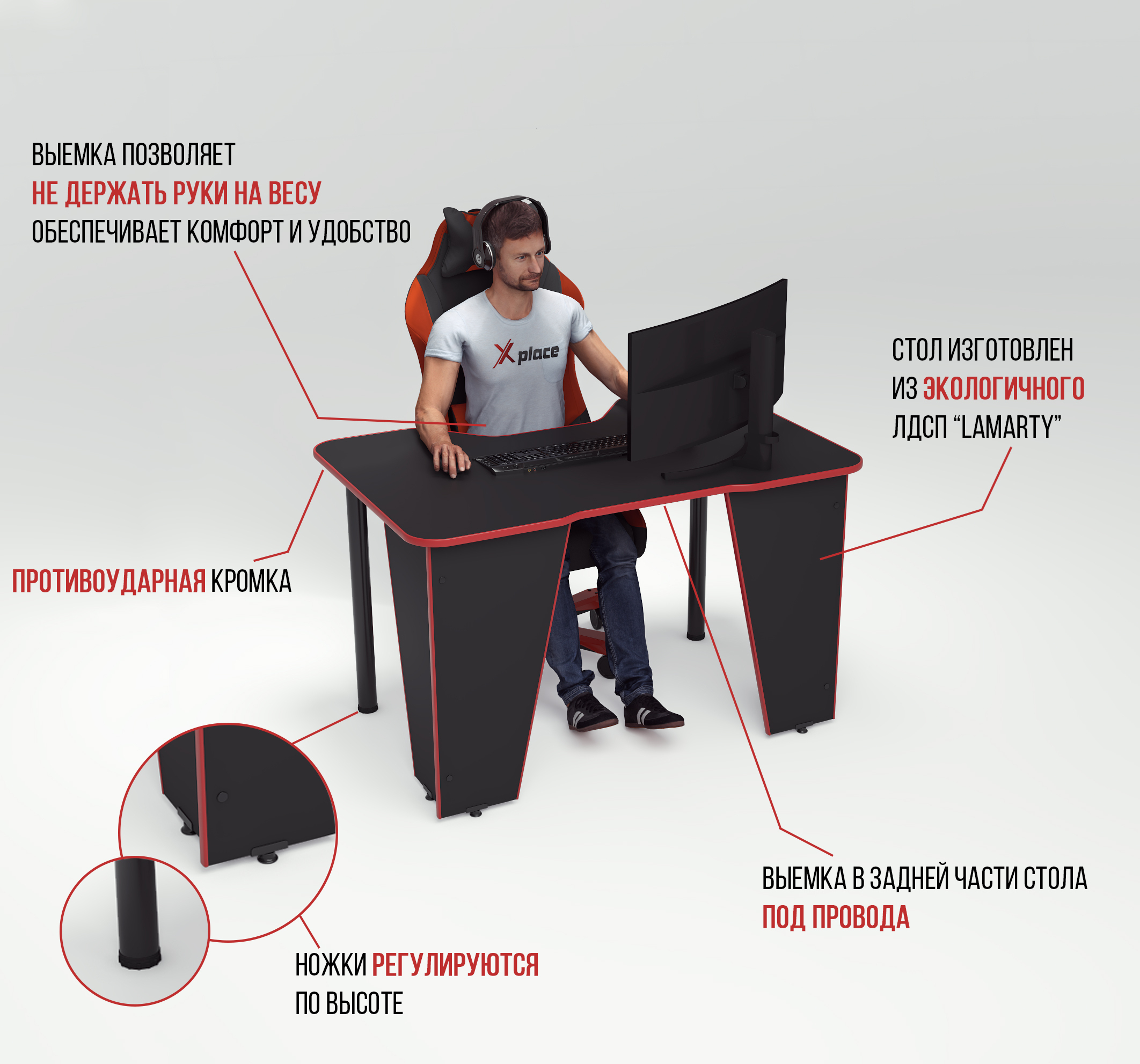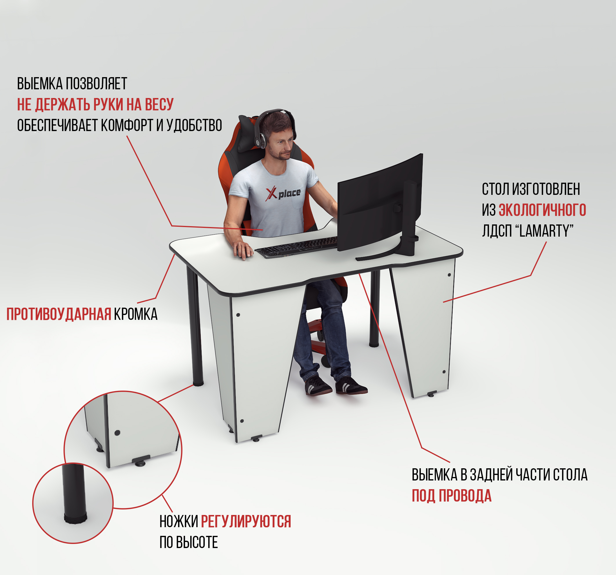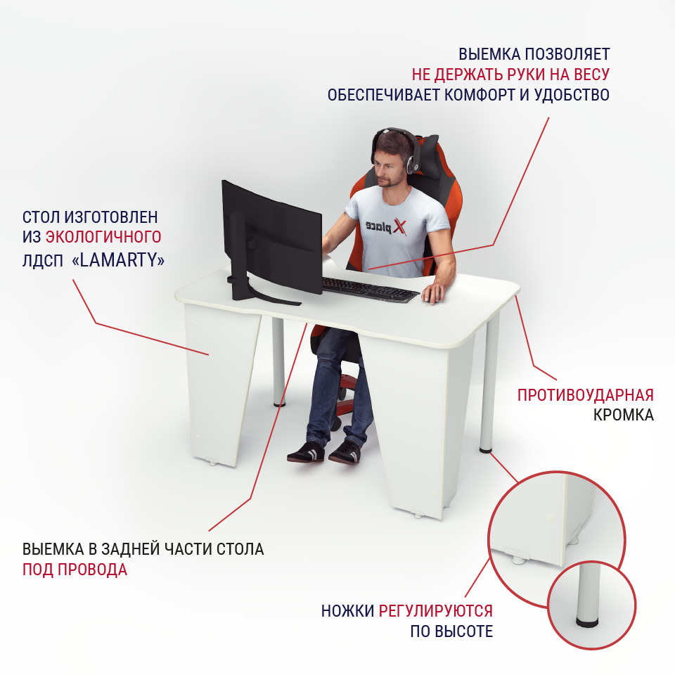 Геймерский компьютерный стол Xplace Xplace+ , 120х78х75 см