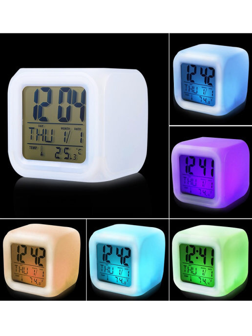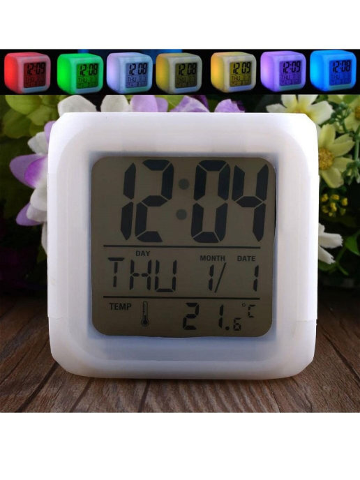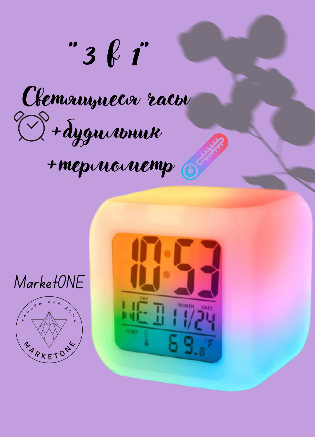 Часы-будильник электронные COLOR CHANGE с разноцветной подсветкой / Часы настольные электронные