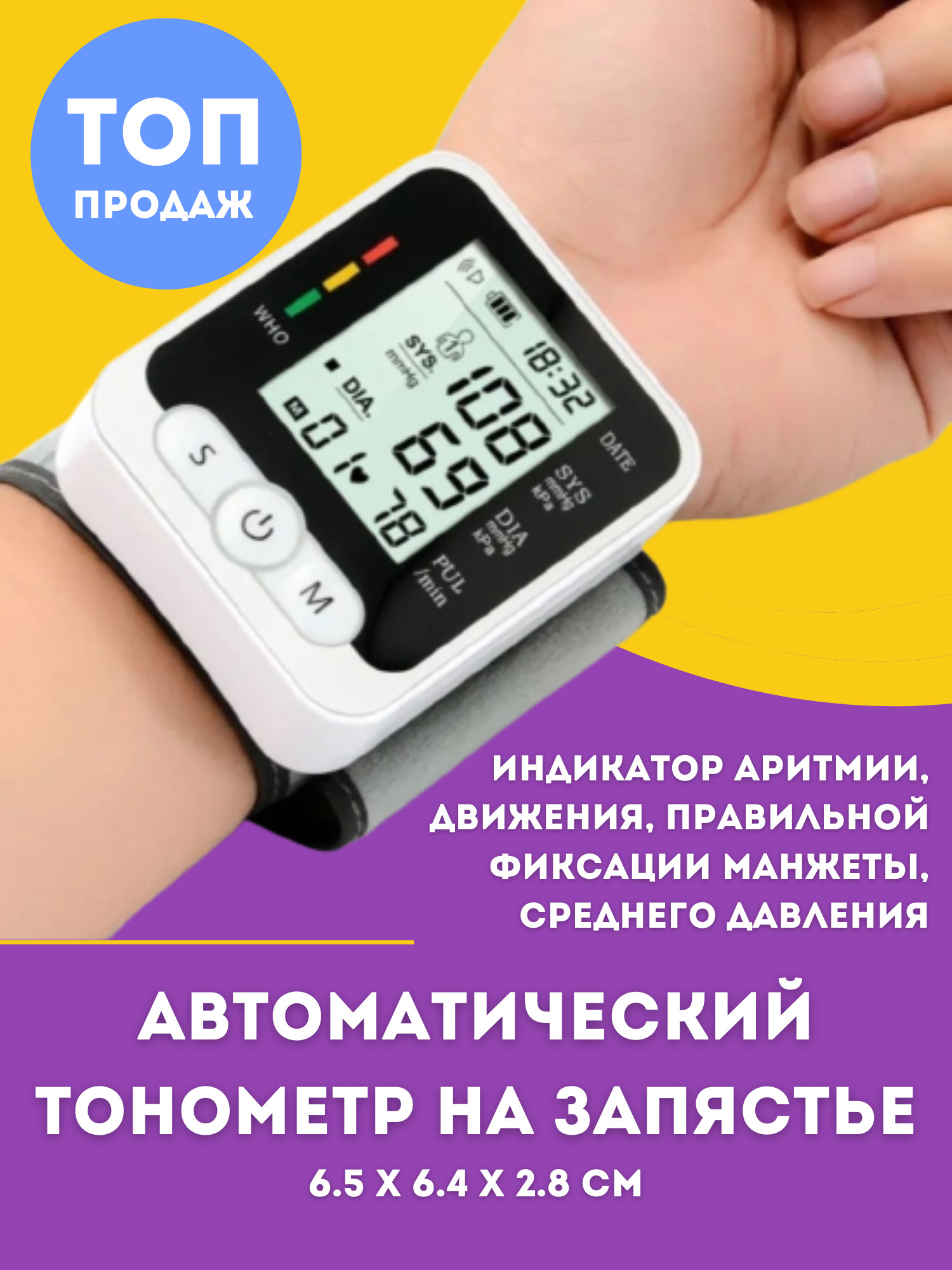 Тонометр ручной на запястье руки / Тонометр автоматический/Аппарат для измерения давления/Измеритель