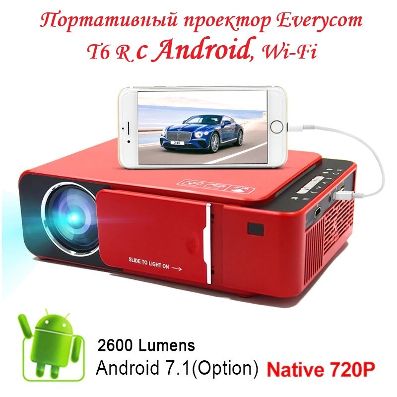 Проектор XPX Портативный Everycom T6 R с Android, Wi-Fi, красный