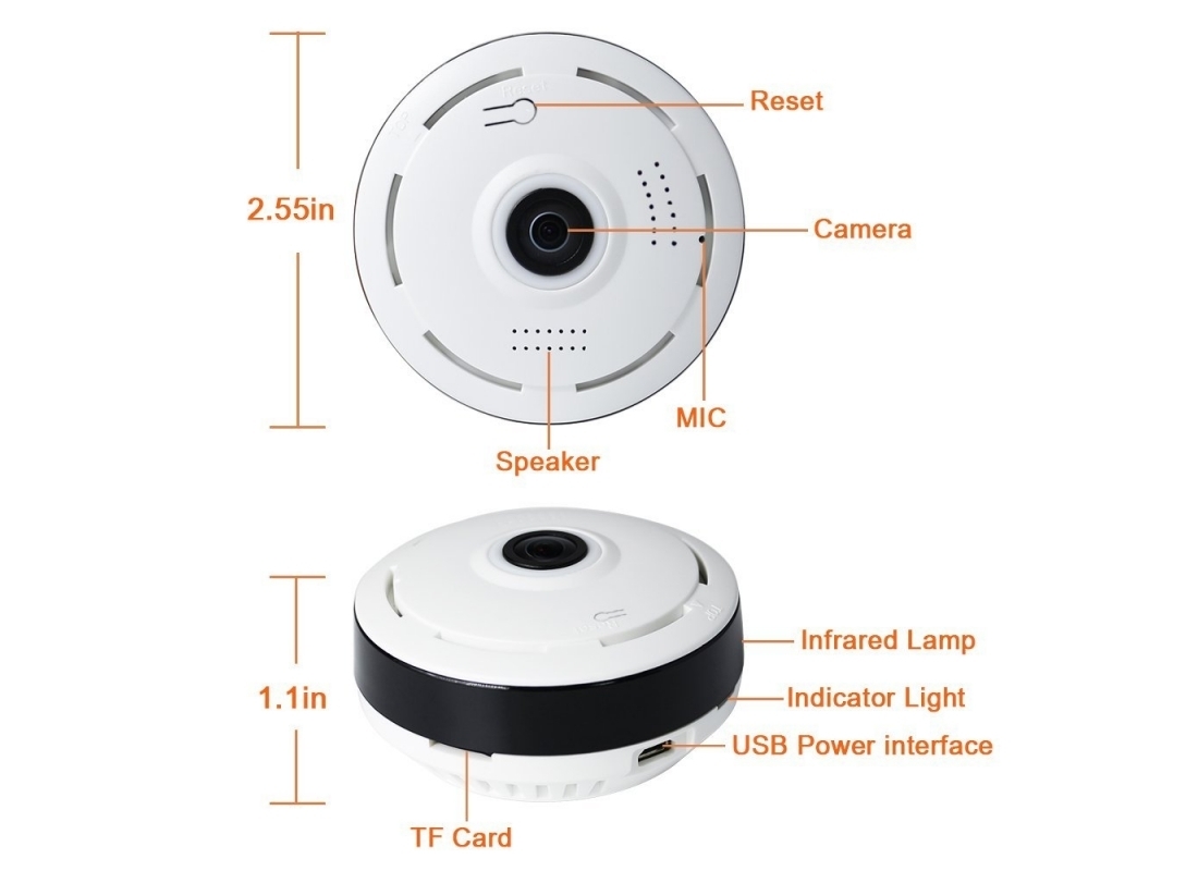 Панорамная IP Wi-Fi камера panoramic camera V380S , 2 mp , Белый