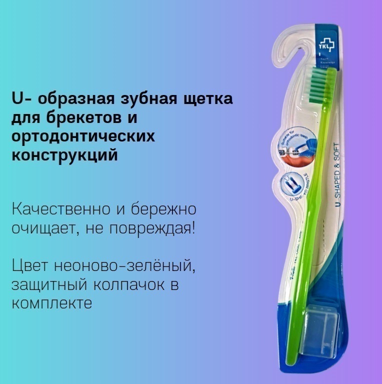 Ортодонтическая зубная щетка для брекетов U-образная, Y-Kelin Orthodontic U-Brush, зеленая