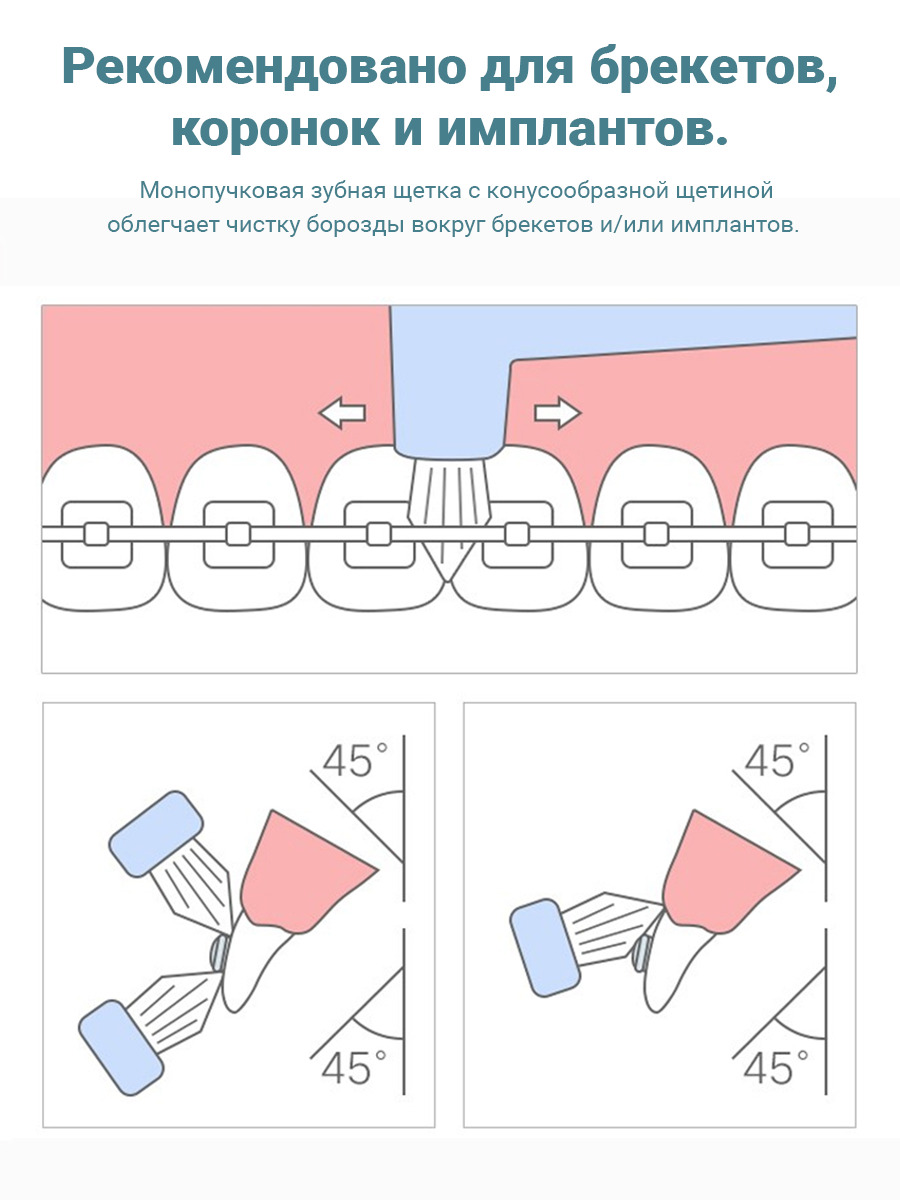 Ортодонтическая зубная щетка для брекетов U-образная, Y-Kelin Orthodontic U-Brush, светло-серая