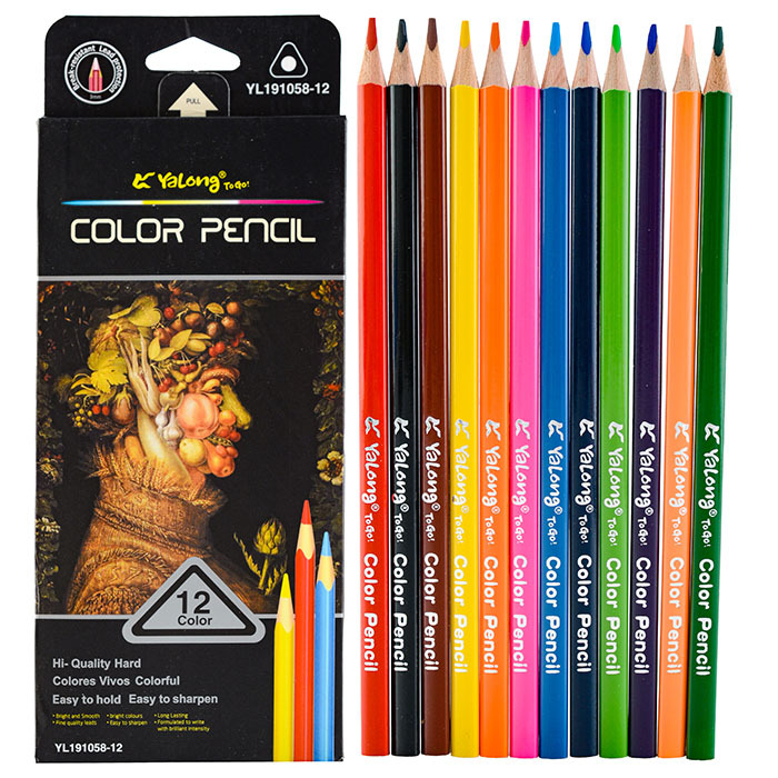 Цветные карандаши деревян. 12 цв., трехгранные, заточенные, картон. упак., европод., YL191058-12