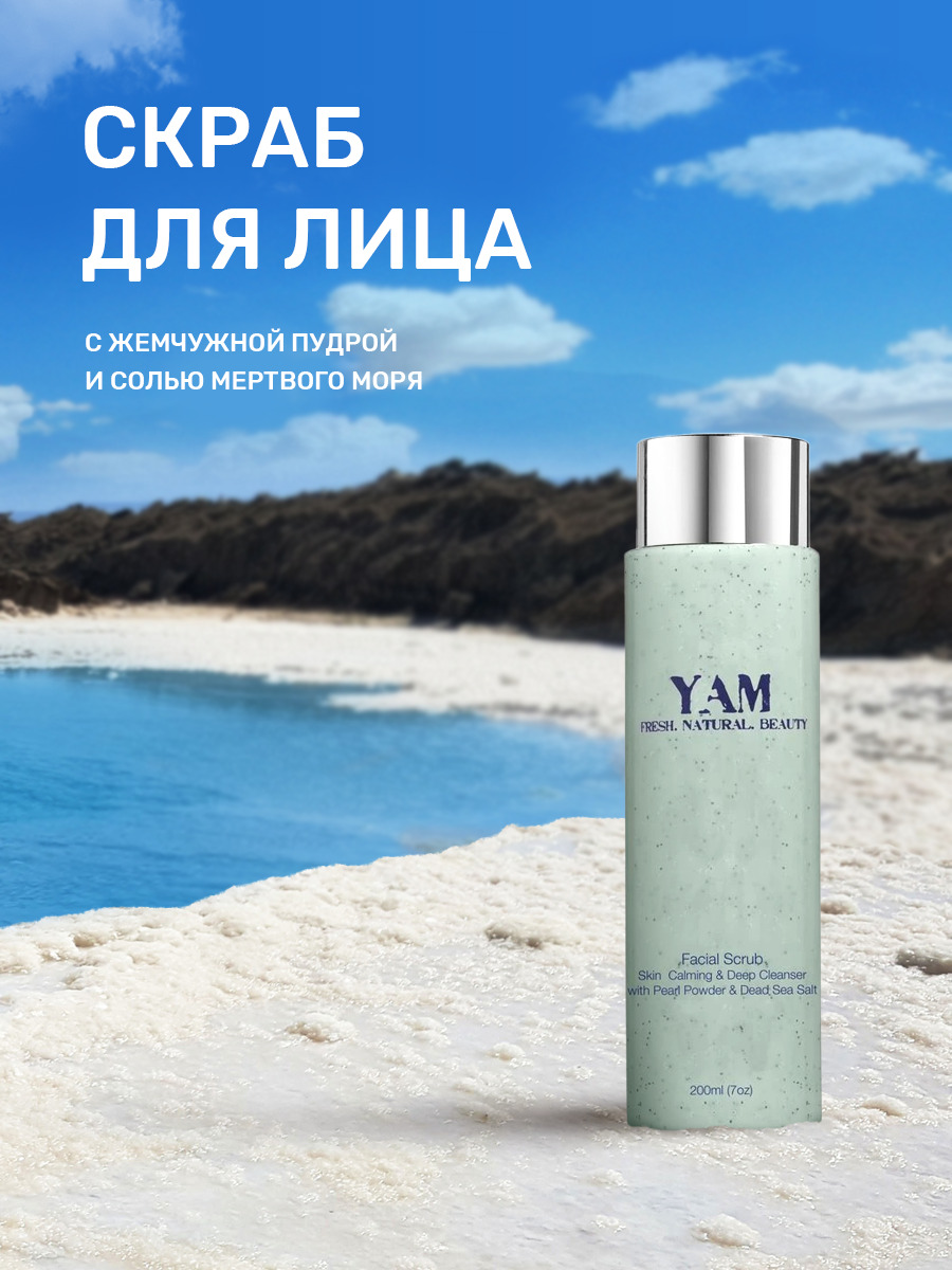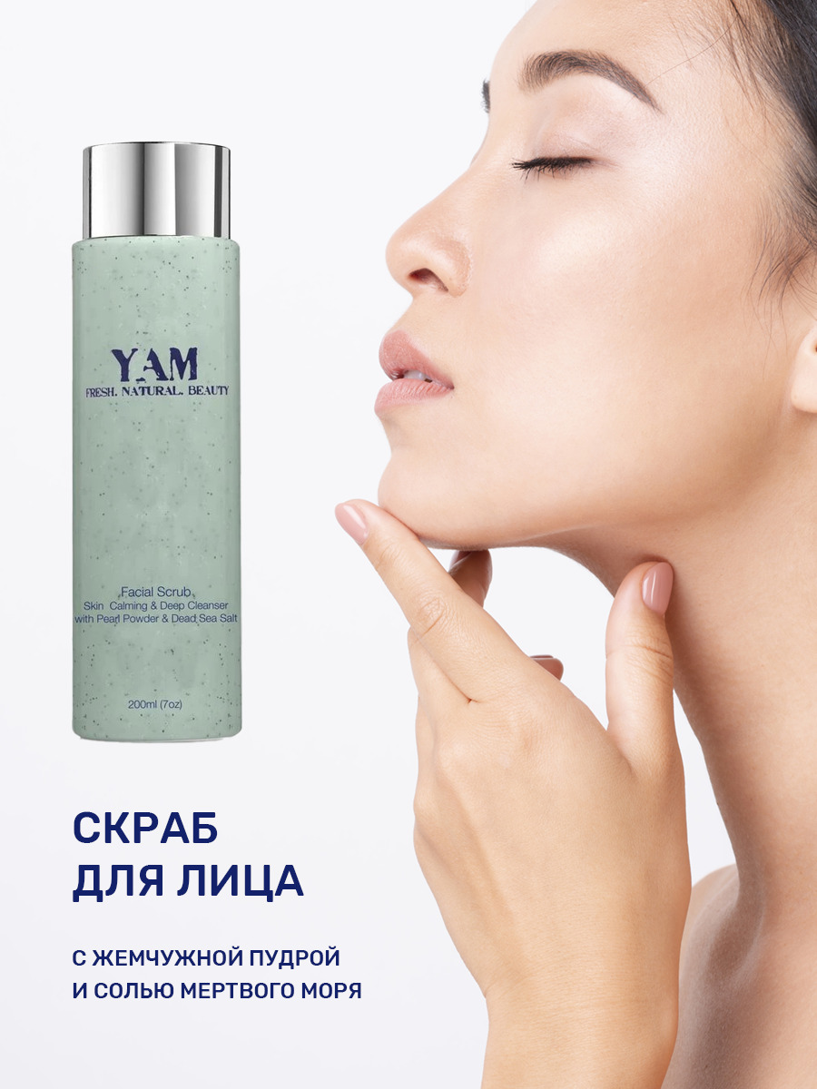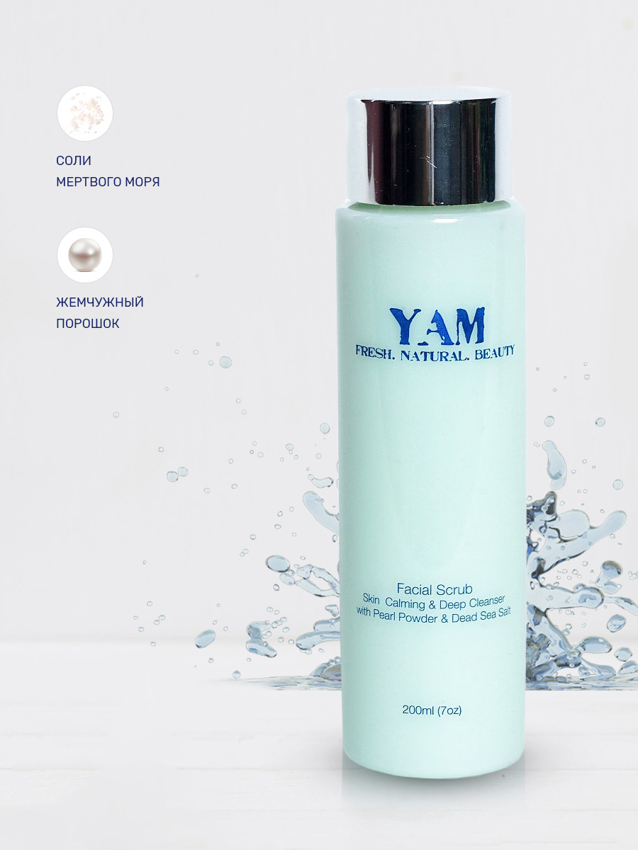 YAM cosmetics Facial Scrub 200 мл. Скраб для лица с жемчугом, витамином С, экстрактом ромашки на основе минералов Мертвого моря.