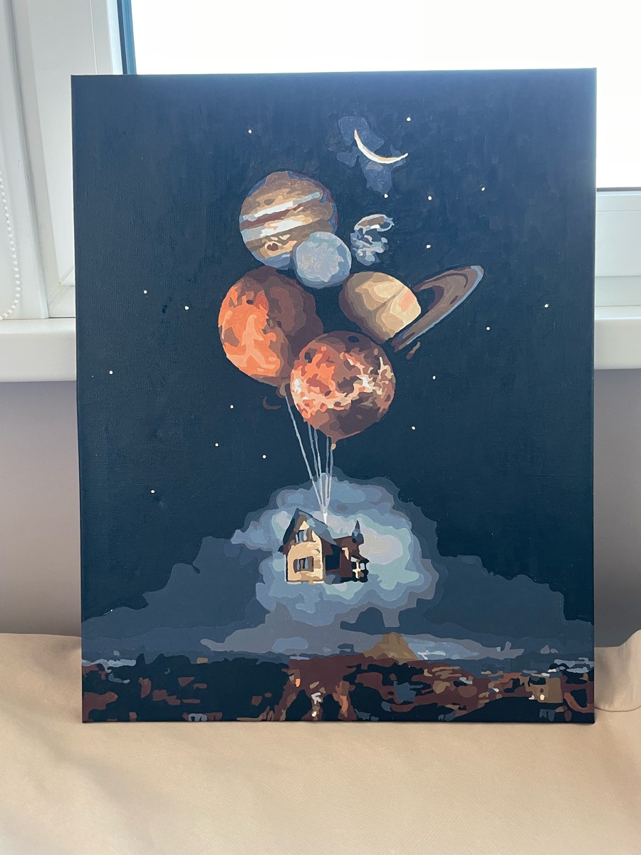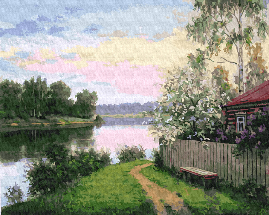Картина по номерам 40 x 50 Домик у реки. Речка. Деревня. Холст на подрамнике