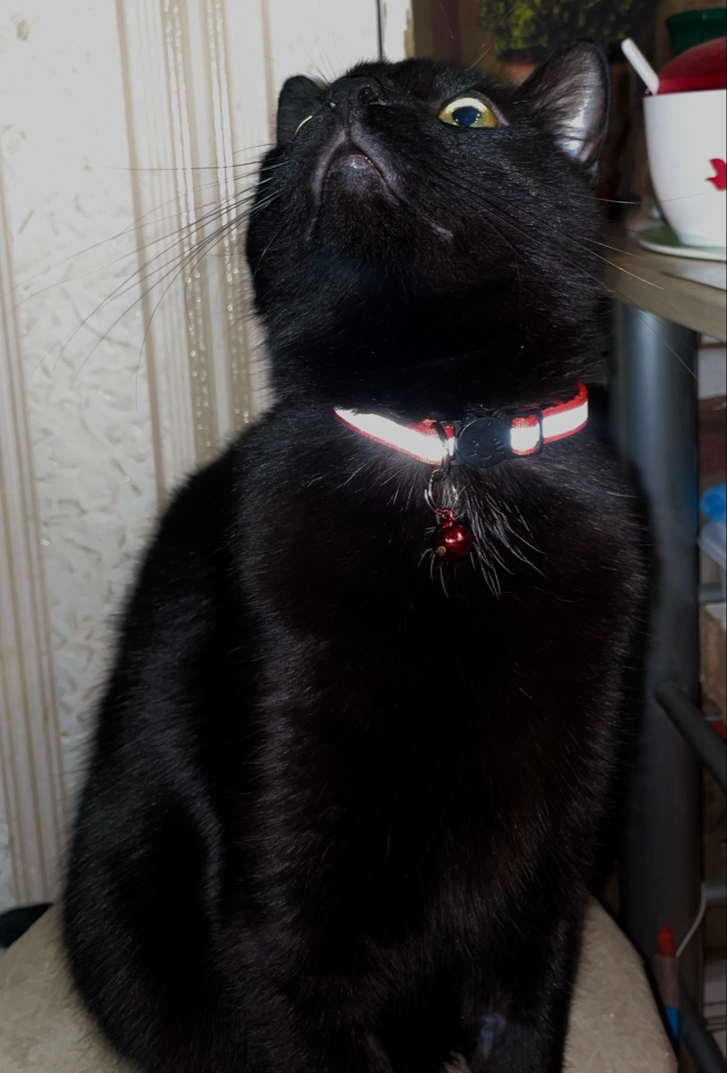 Ошейник "Лапки" для кошек и собак маленьких пород Yanmax с подарком (игрушка - шарик 3,2 см), черный