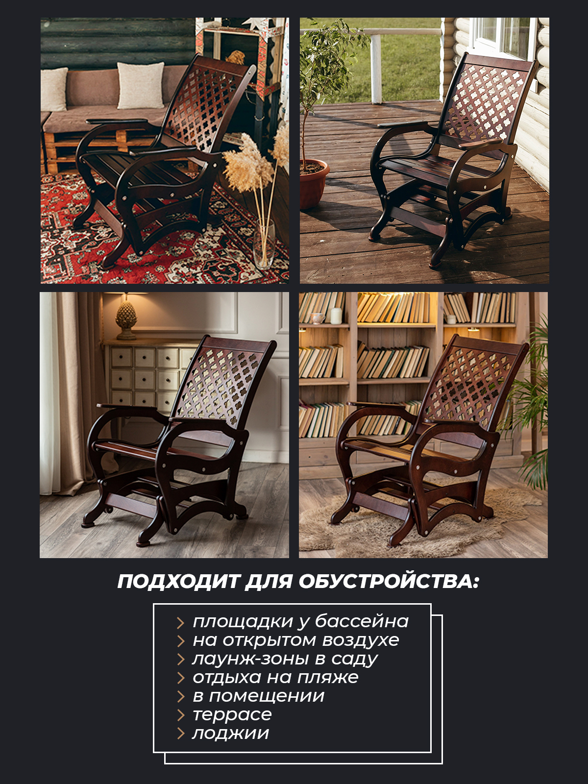 Кресло-качалка, Кресло-маятник глайдер для дома и улицы, садовое Орех Ажурная спинка, 57х77х97 см