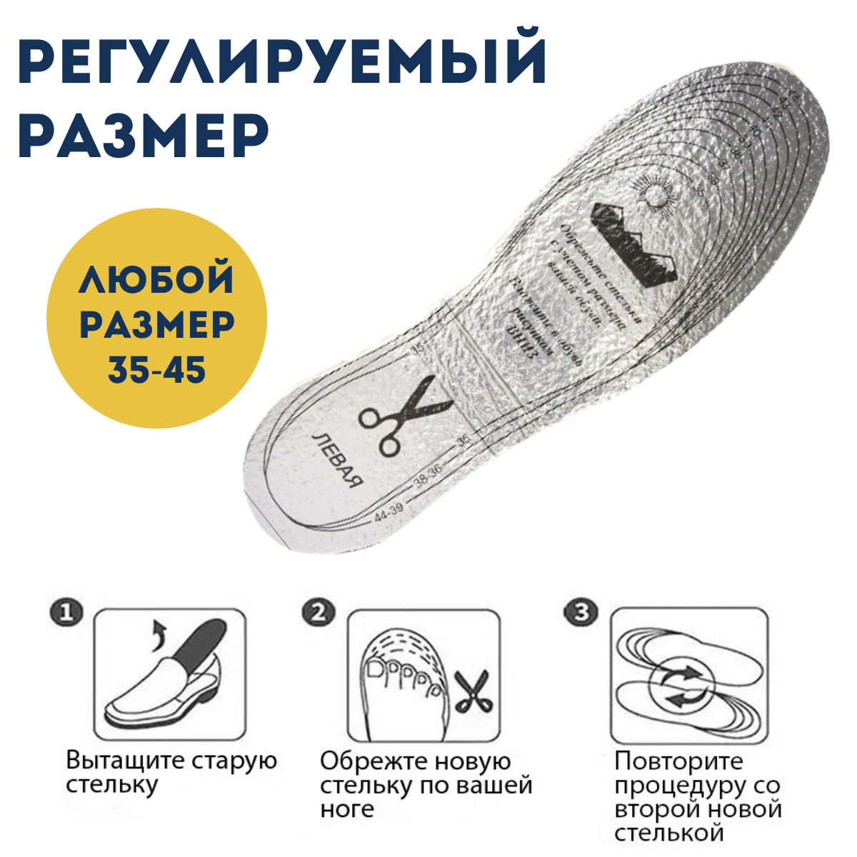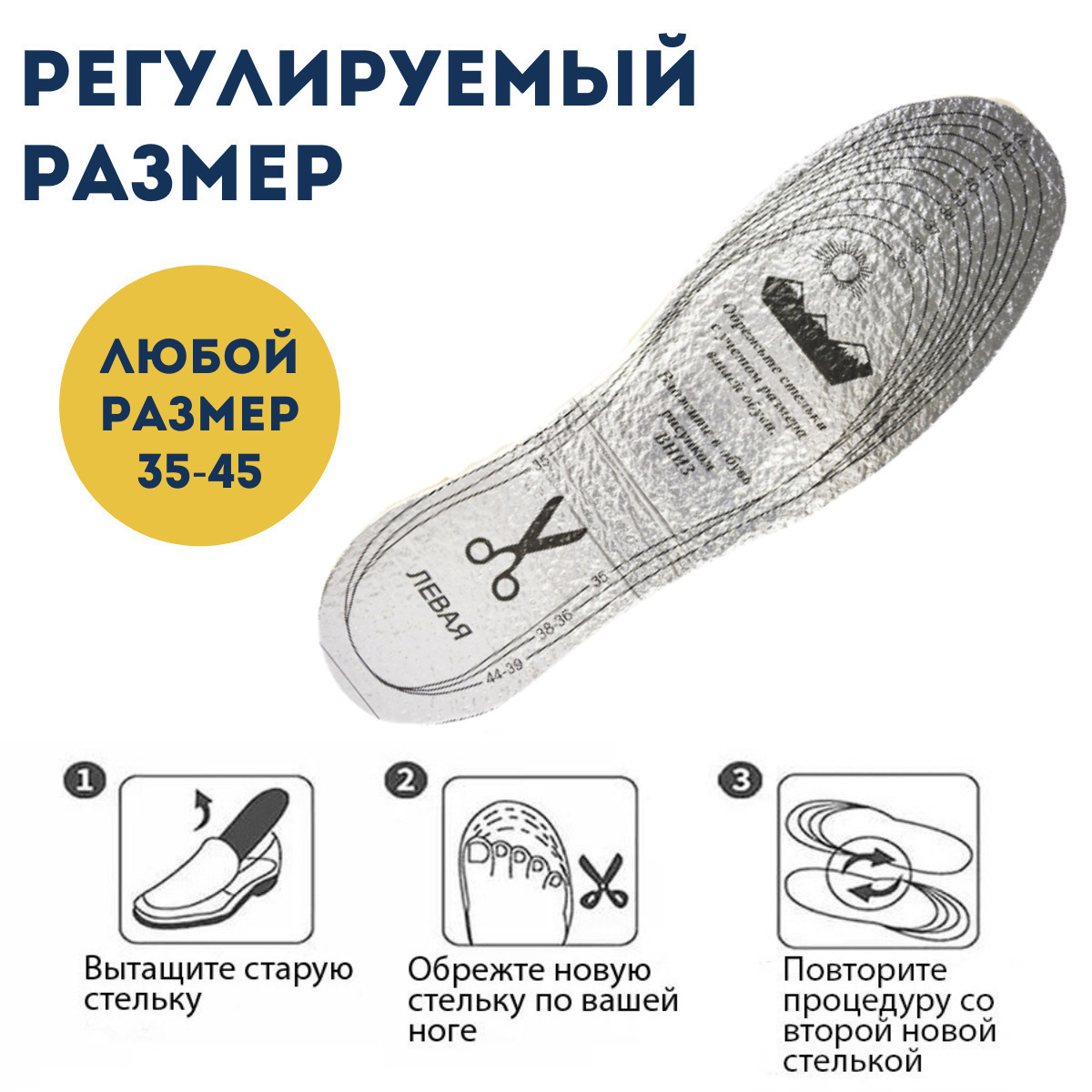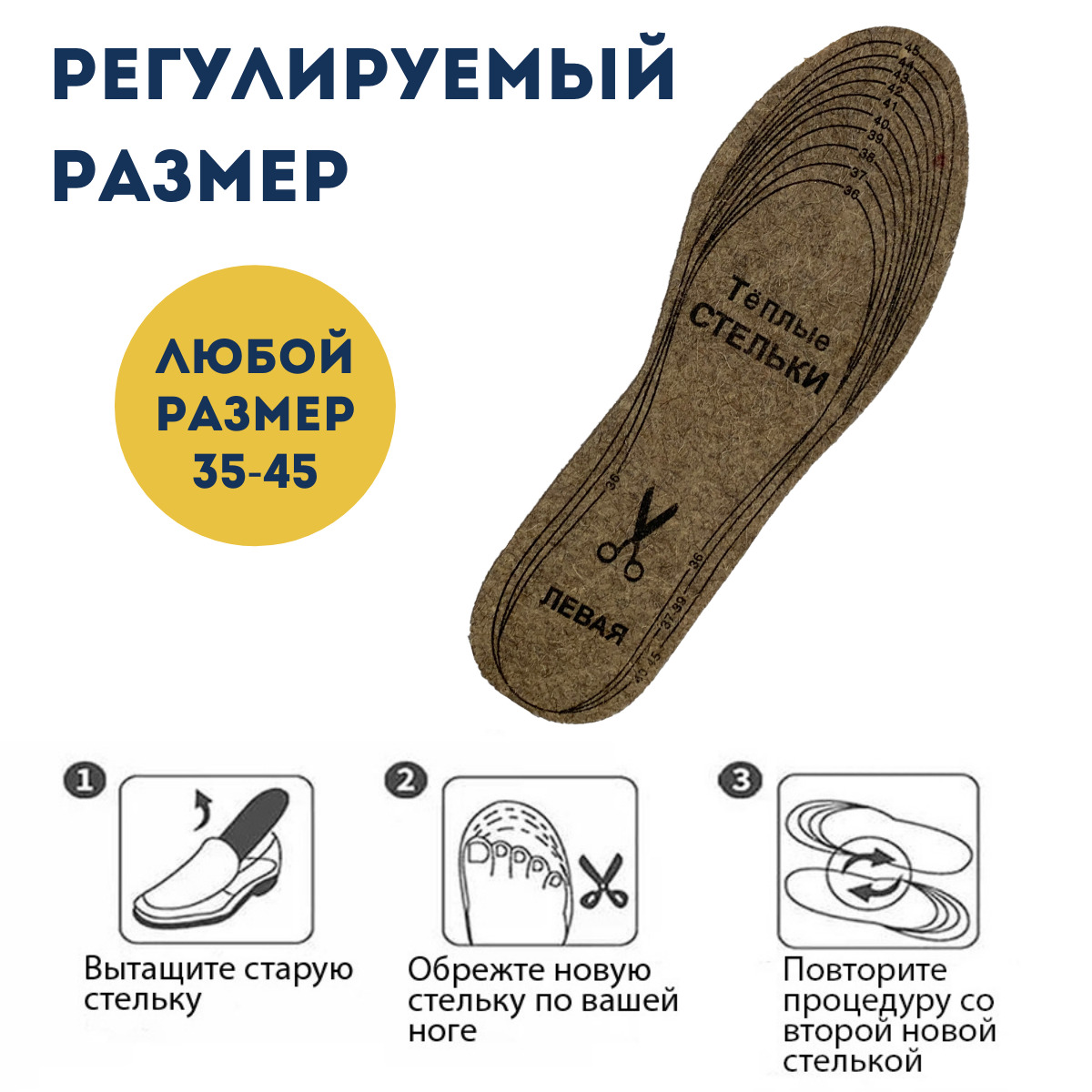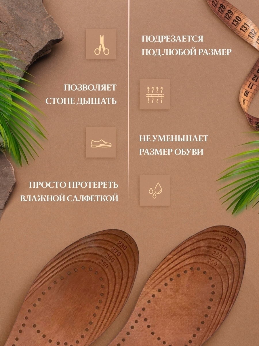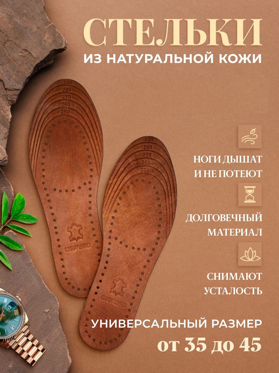 Стельки универсальные из натуральной кожи, для обуви, антибактериальные, 2 шт. (пара), размер 35-45