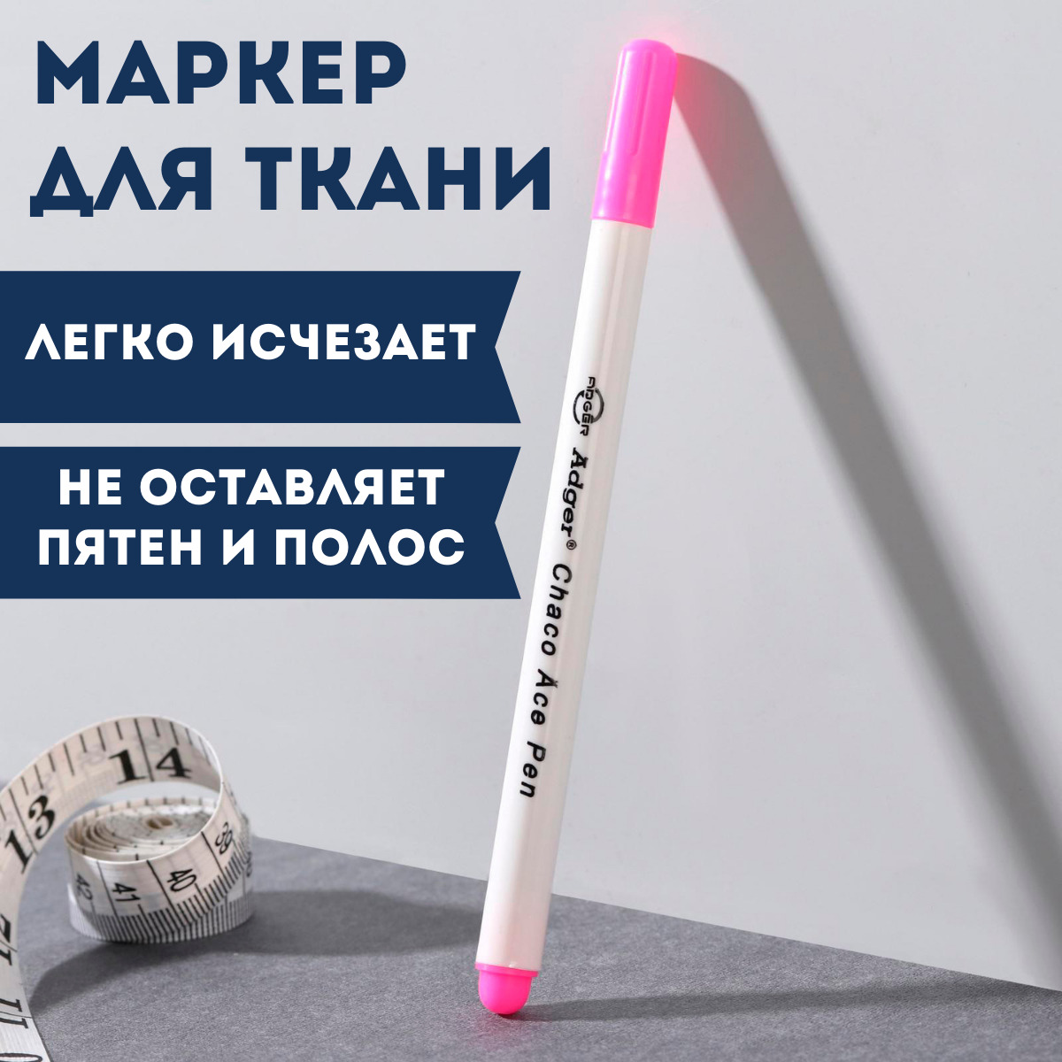 Маркер для ткани, самоисчезающий, 15 см, цвет розовый