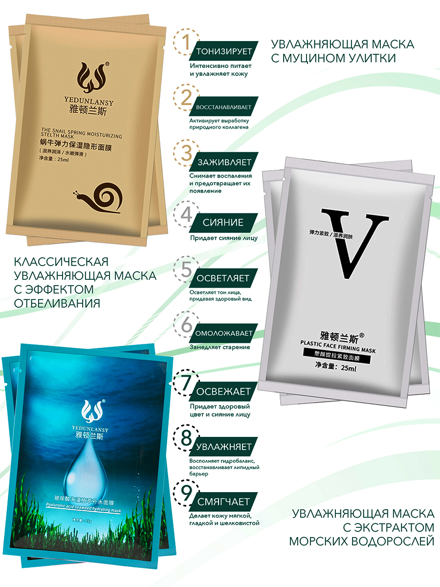 YedunlansyТканевая маска для лица набор 6 штук/Косметическая маска/Увлажняющая маска