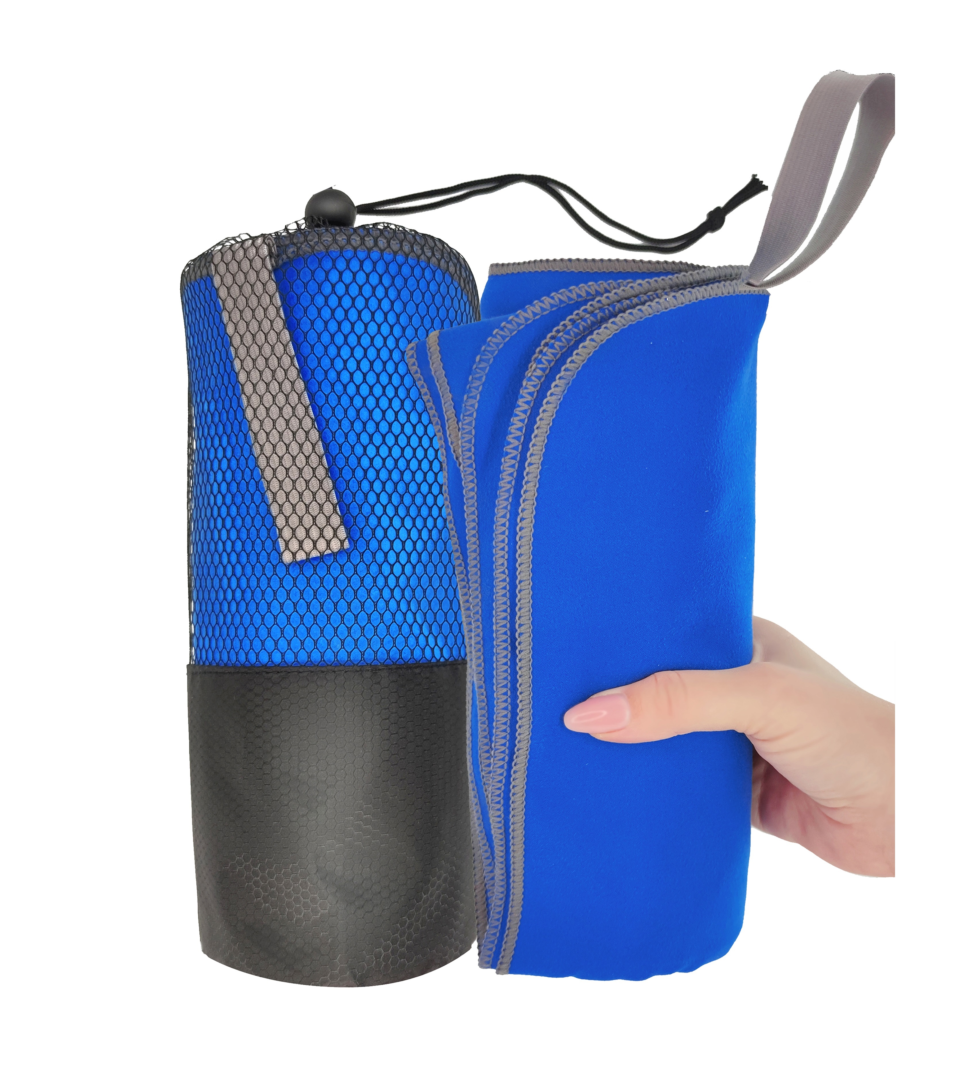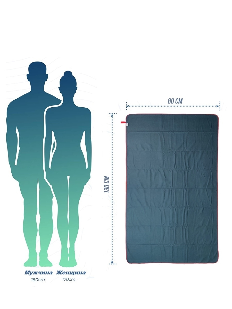 Полотенце спортивное из микрофибры для бассейна и кардио 180*90 см с сумкой синее