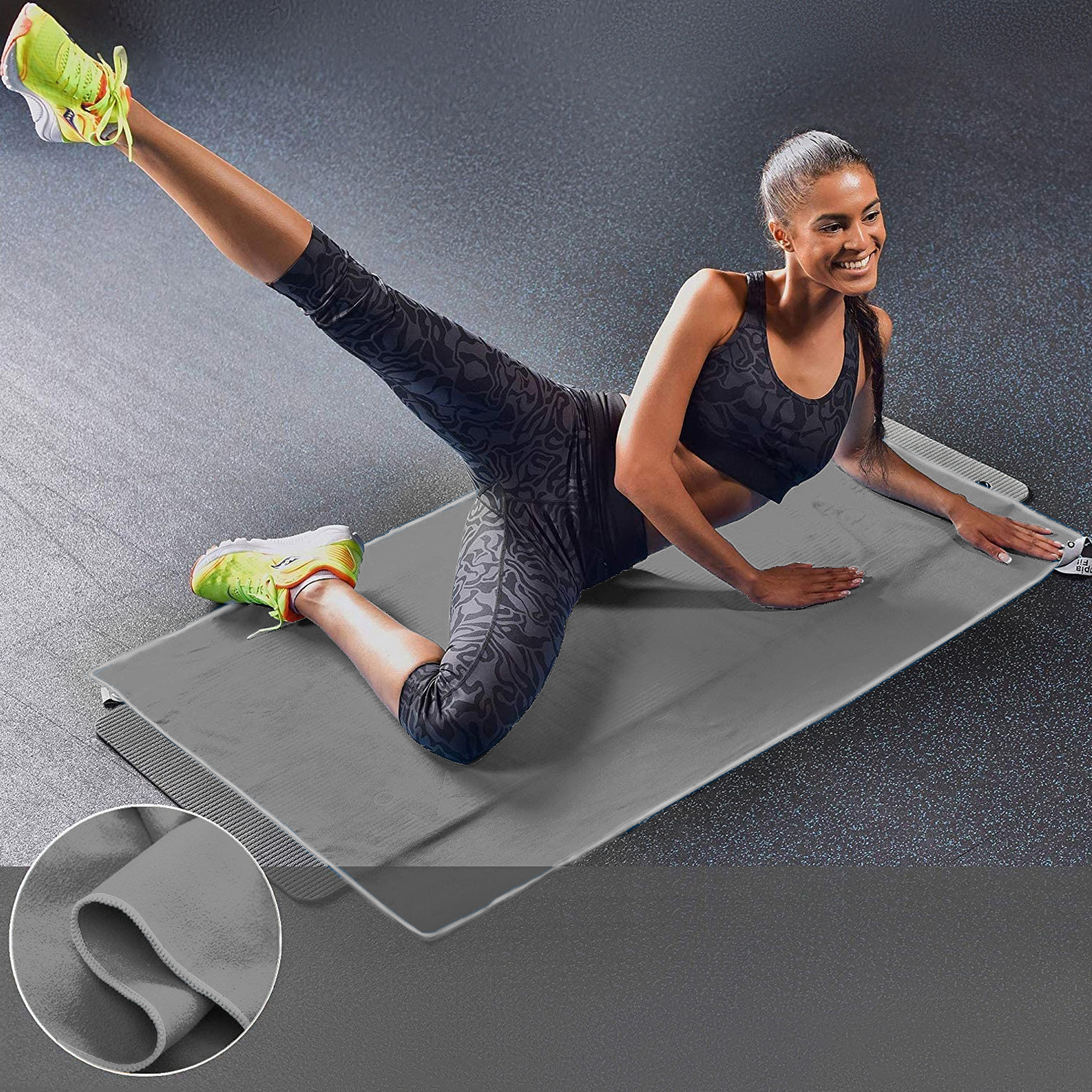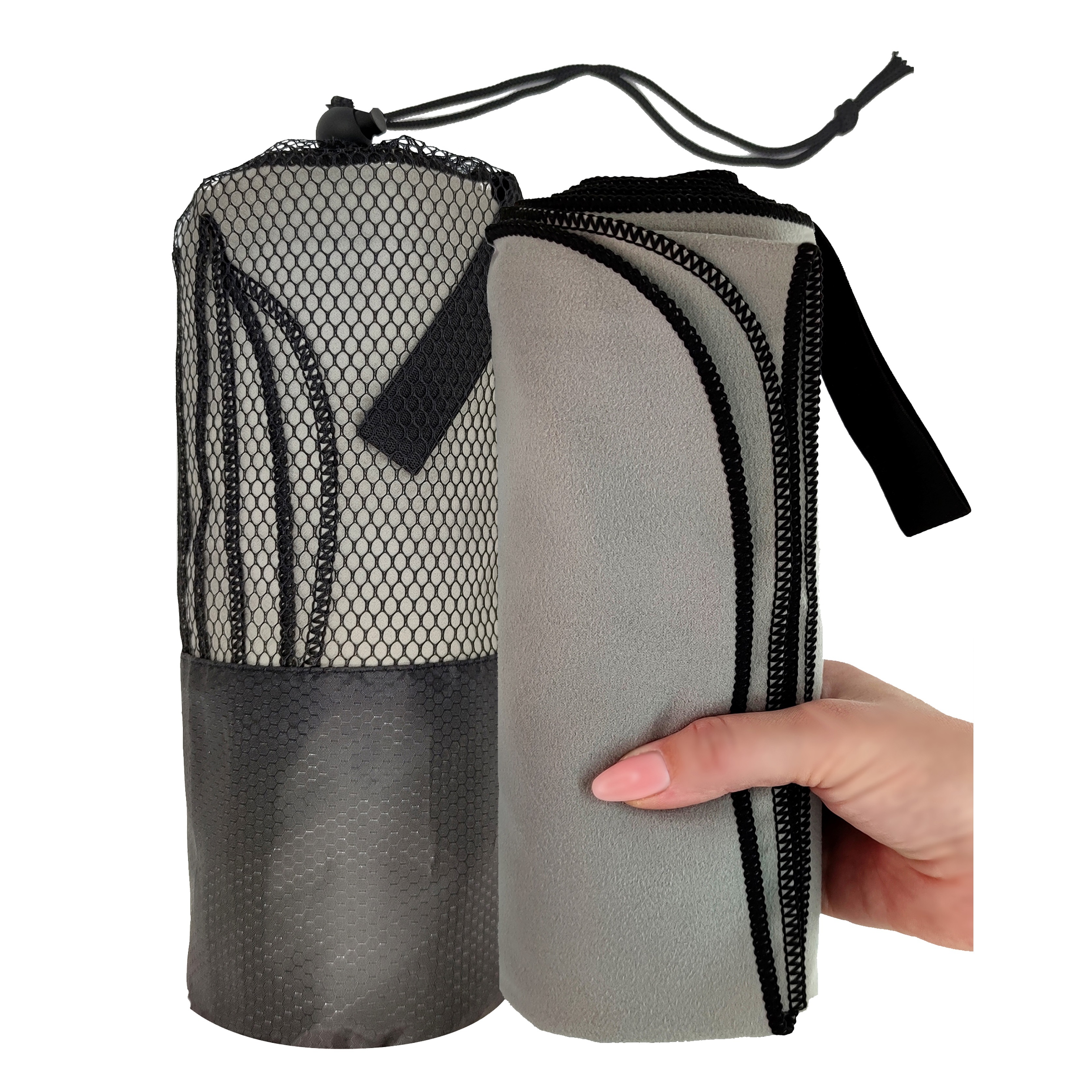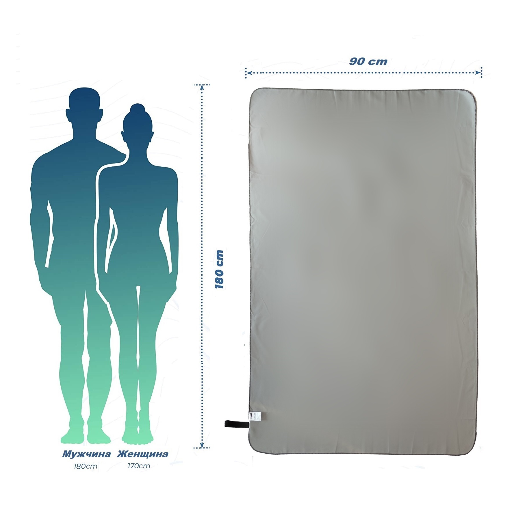 Полотенце спортивное из микрофибры для бассейна и кардио 180*90 см с сумкой серое