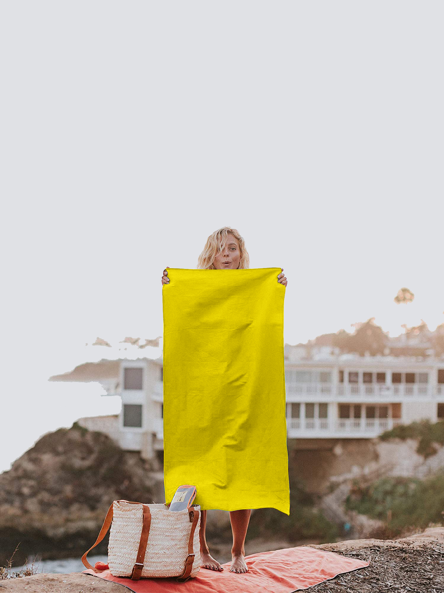 Полотенце спортивное из микрофибры для бассейна и кардио 100*50 см жёлтое c сумкой