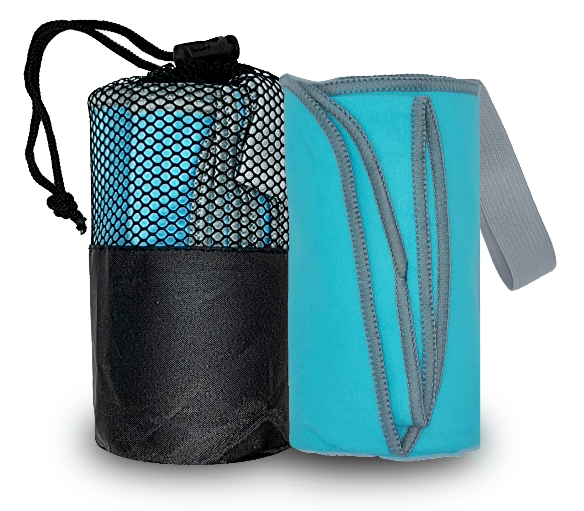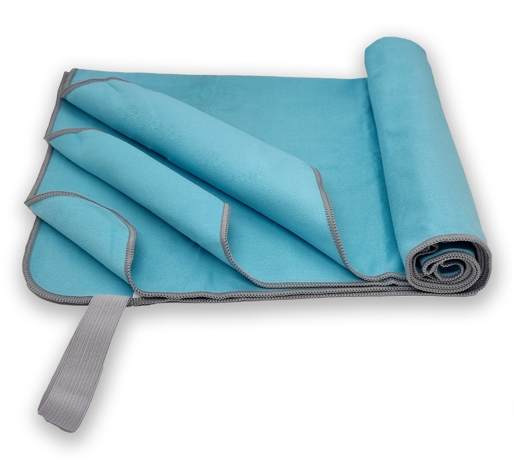Полотенце спортивное из микрофибры для бассейна и кардио 100*50 см с сумкой аквамариново-серебристое