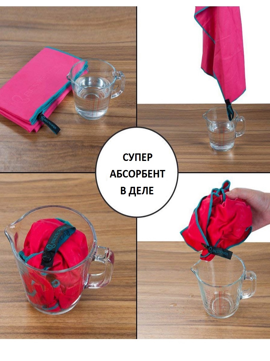 Полотенце спортивное из микрофибры для бассейна и кардио 100*50 см с сумкой розовое